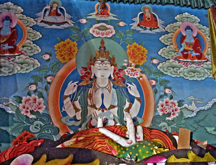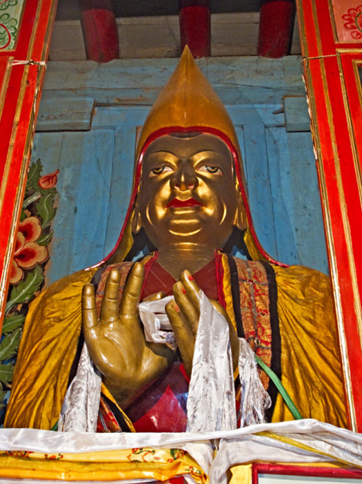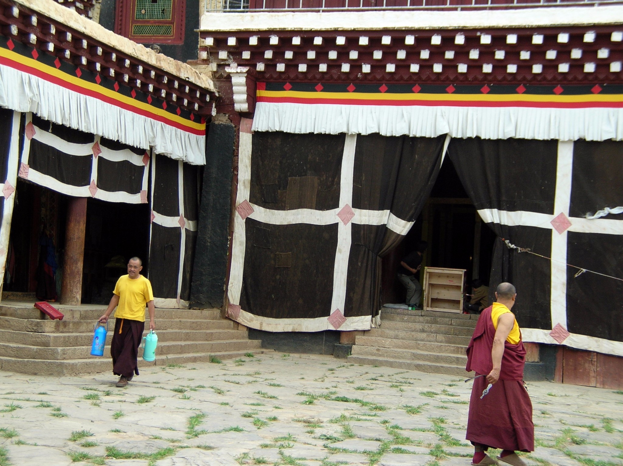 这里有僧侣500多人,其中有几十人现在尼泊尔学习佛教。常驻这里的只有100多人。灵雀寺是格鲁教派的寺庙,供奉宗喀巴大师。