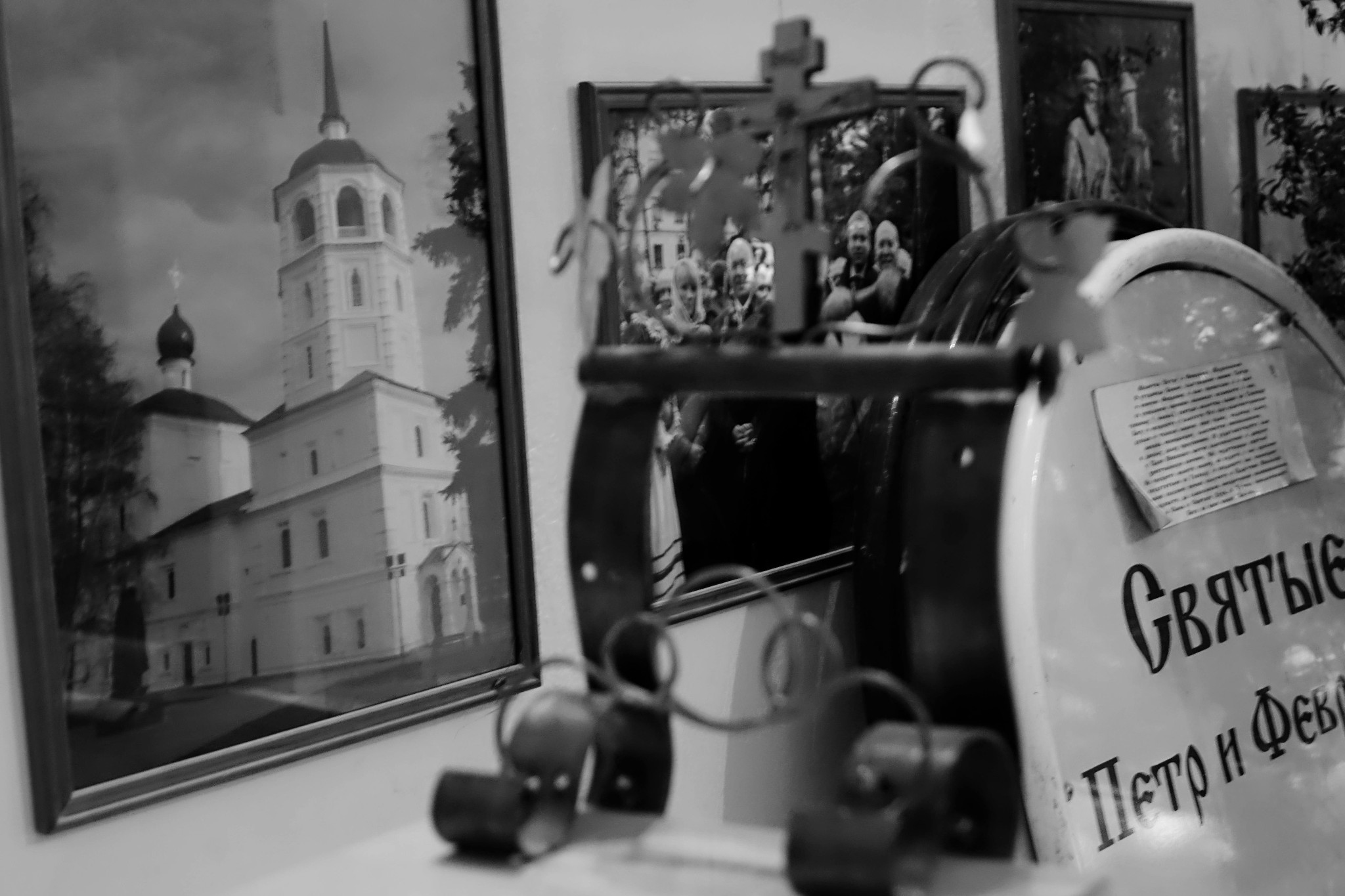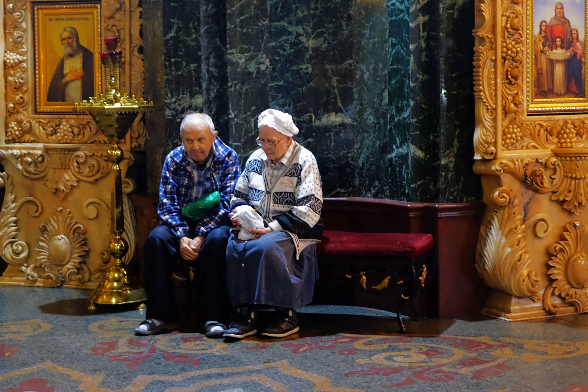 教堂内部异常华丽。俄罗斯的信徒们在教堂里点烛、祈祷,在这样的氛围里,镜头只能对向别处。