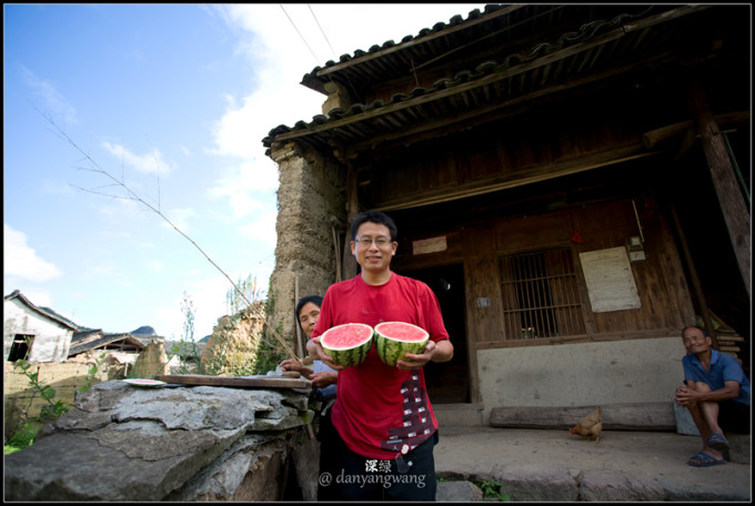 “西瓜吃不吃,自家种的,甜得很咯!”