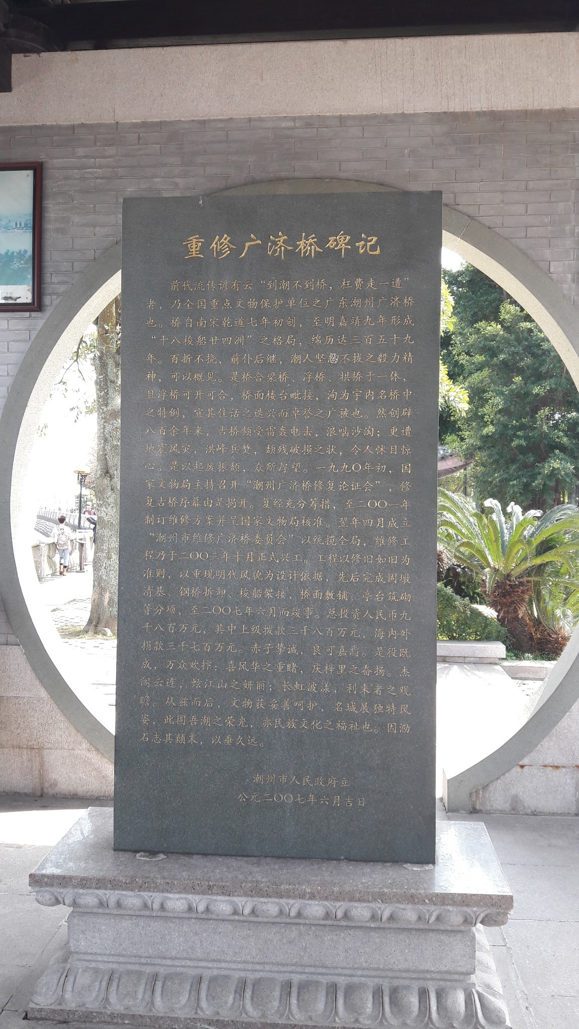 那天早上我们主要去了一个潮州必去景点——广济桥又叫湘子桥 是古代汉族桥梁建筑的杰作。位于广东省潮州古城的东门外,初建于宋代,距今已有800余年的历史。广济桥奇特别致的结构,集梁桥、拱桥、浮桥等形式于一体,凝结了古代汉族劳动人民的智慧和艺术的结晶。它是中国第一也是世界第一座启闭式桥梁,以其"十八梭船二十四洲"的独特风格与河北赵州桥 、泉州洛阳桥 、北京卢沟桥 (亦作芦沟桥)并称中国四大古桥 。