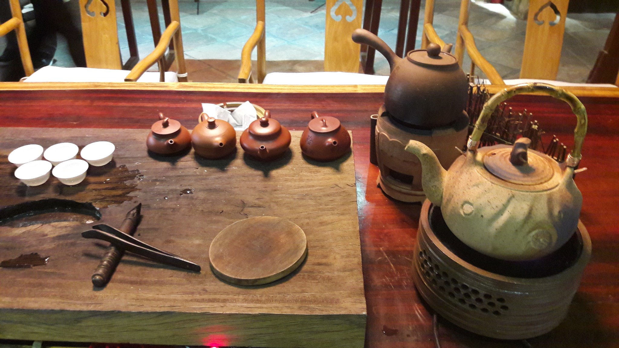 逛完古城后,经大学介绍,我们去了一个茶座品尝了一下功夫茶,茶好,环境好。