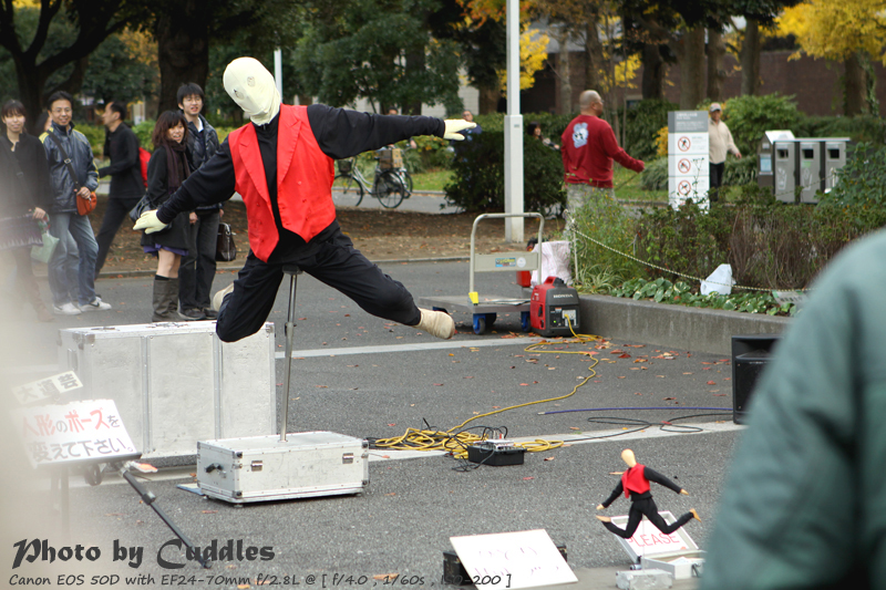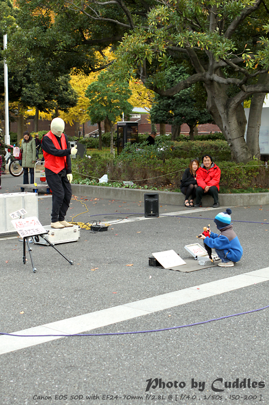 人偶艺人,操纵面前小小的人偶,后面的人会摆出相同的姿态。一个调皮的小孩把小人偶弄出了一个很尴尬的样子。。。