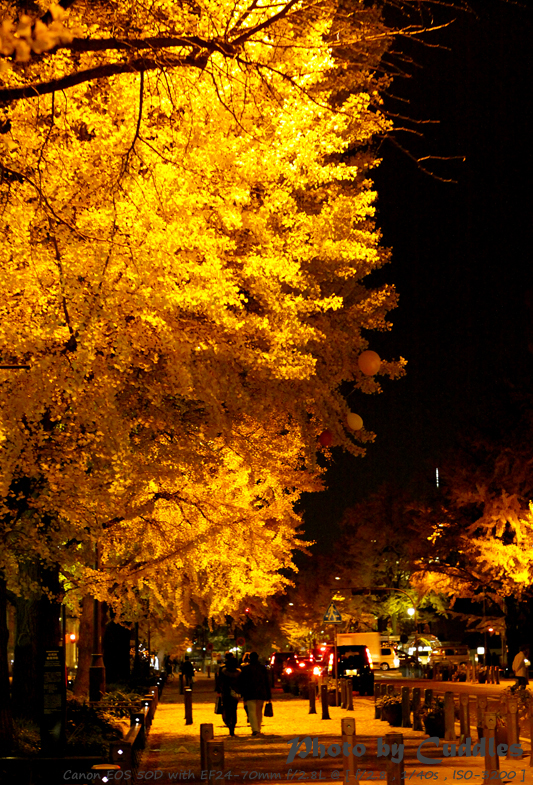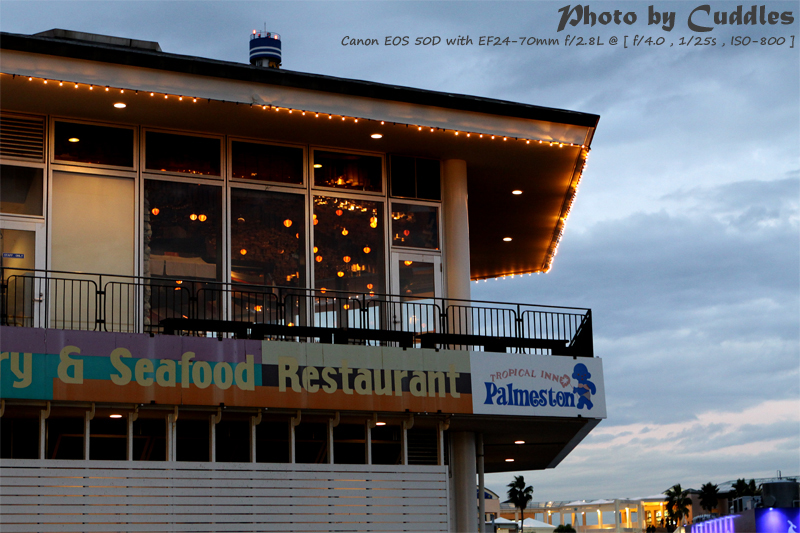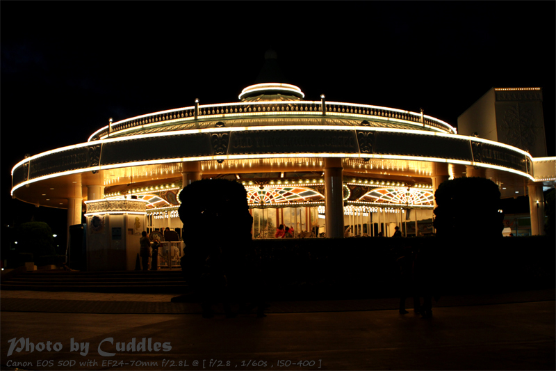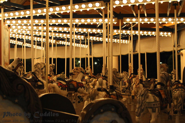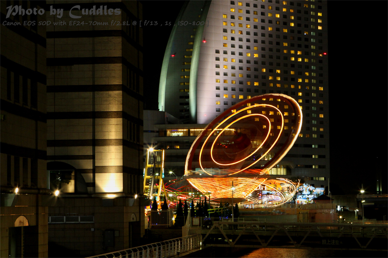 夜的游乐场。(由于没有带三脚架,所以把相机放在路边栏杆的扶手上拍的)