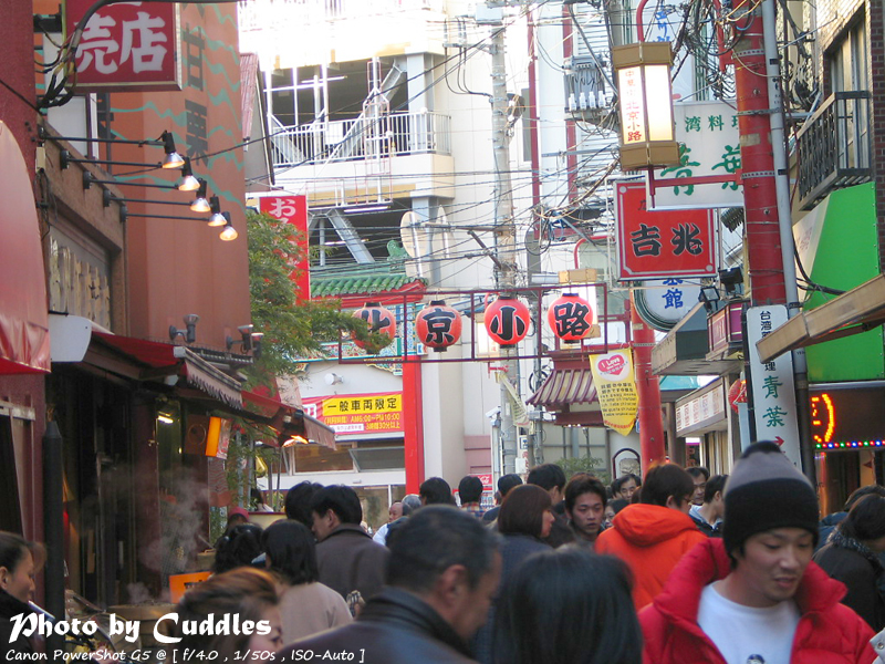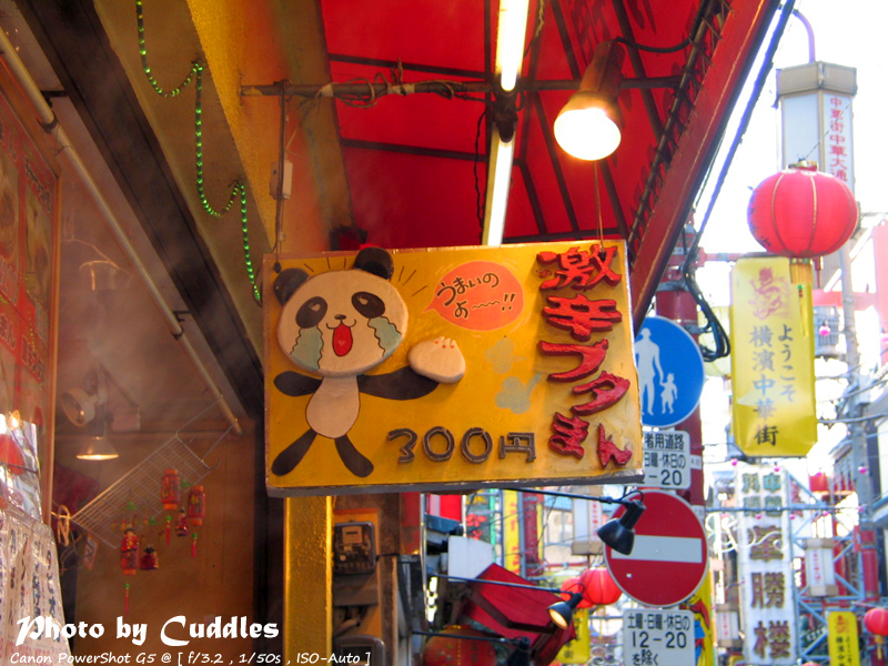 中华街中的一角:好吃的肉馒头,熊猫都感动得流泪了。