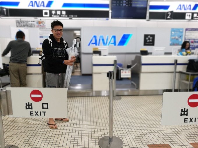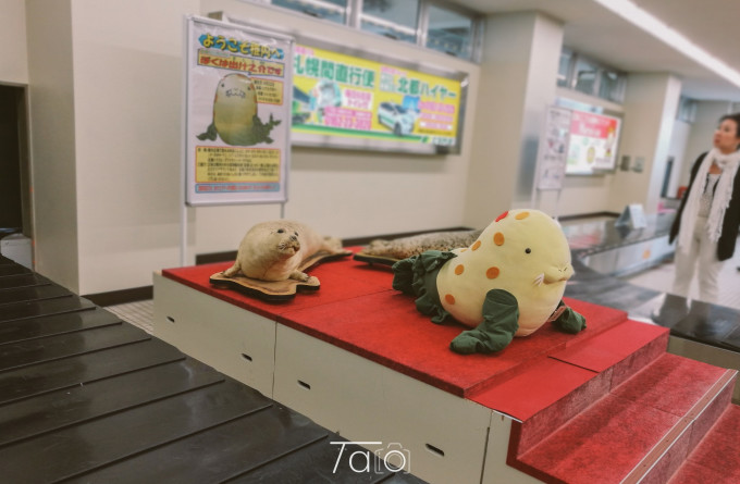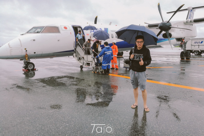 飞机落地,稚内机场是全日本最北的机场,在海边,非常非常小,虽然机场不大,但是服务一如既往的好,下了飞机,每人递上一把NH的伞走进大厅。
