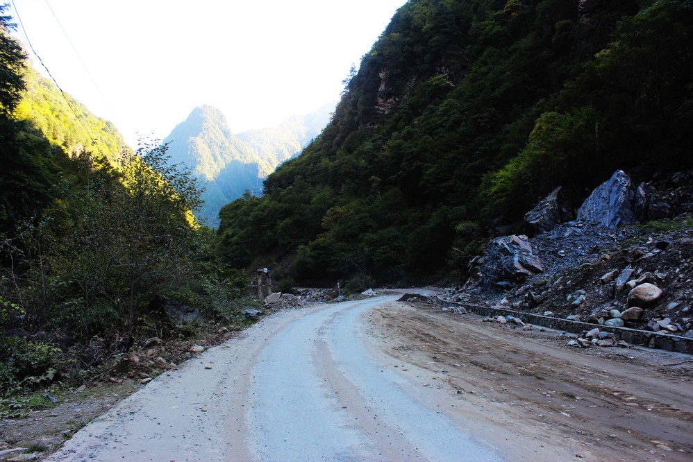 从这里开始就全是烂路,道路两边都是修路的人,我们就一直在延山谷下的公路行驶,这里手机没有信号,老友的“apple”没了信号,开不了导航,我们自己都不知道前面是哪里,只是边走边问。
