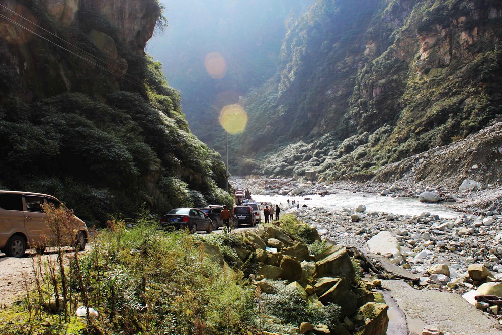 下了巴郎山,前往号称熊猫王国的-卧龙国家自然保护区。噩梦来了,一路非常烂,有些地方完全不能称为路,我们就这样开呀开呀,深夜到达卧龙,感觉没什么特别的,到处都在工地,我们决定克服一切困难继续前进,因为下一站是映秀 ,到了映秀 就可以上都汶高速,1个半小时就可以到成都 了。