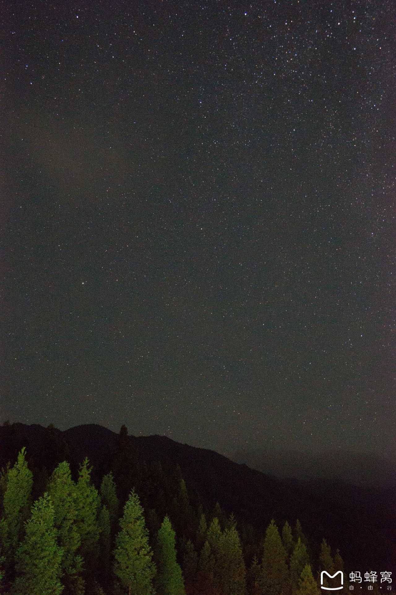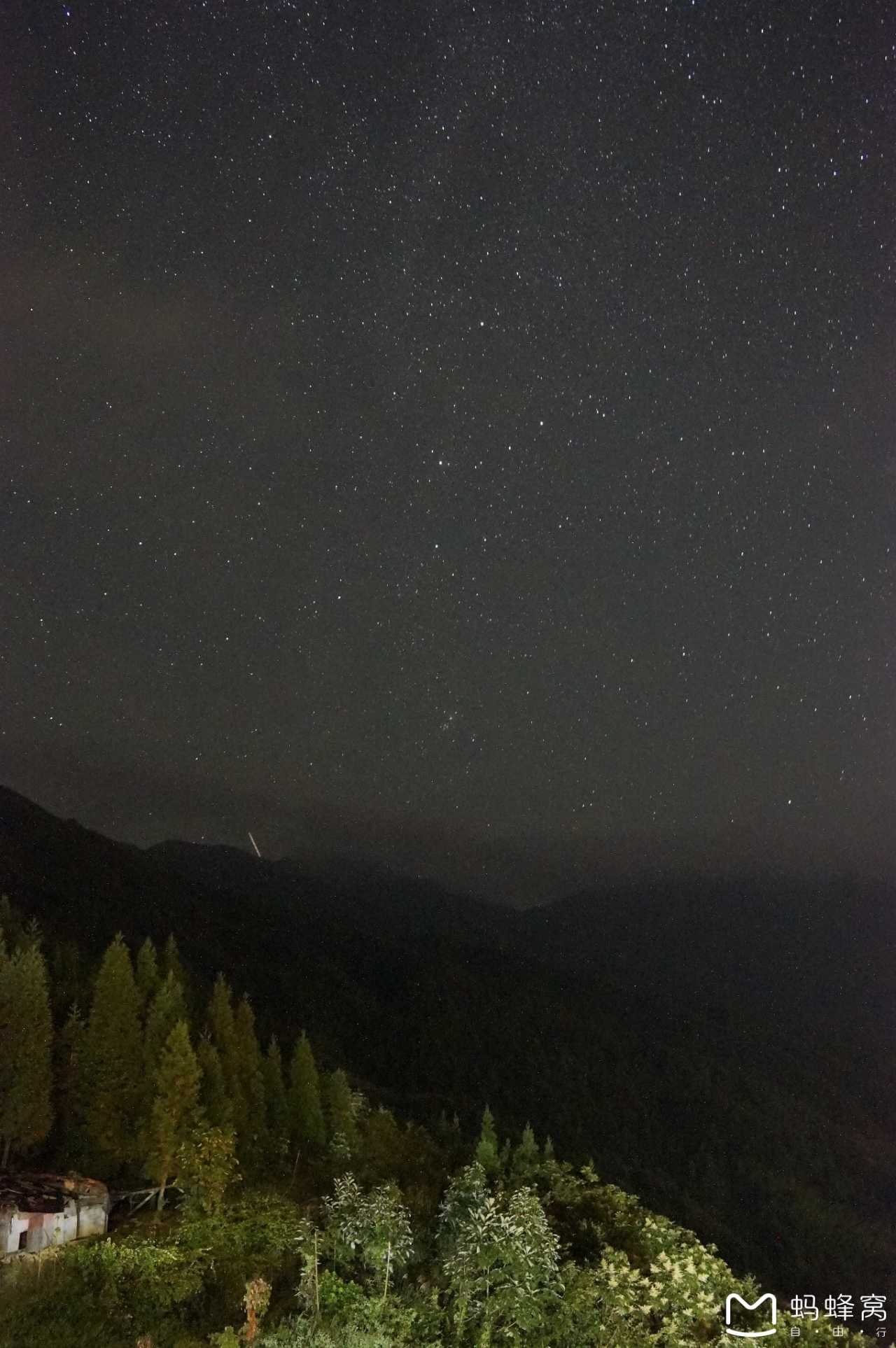 当天晚上,挺冷,但我在房间里目测四周乌漆吗黑的天空,感觉挺适合拍星空的,于是乎,抓起三角架和相机就往观景台跑。