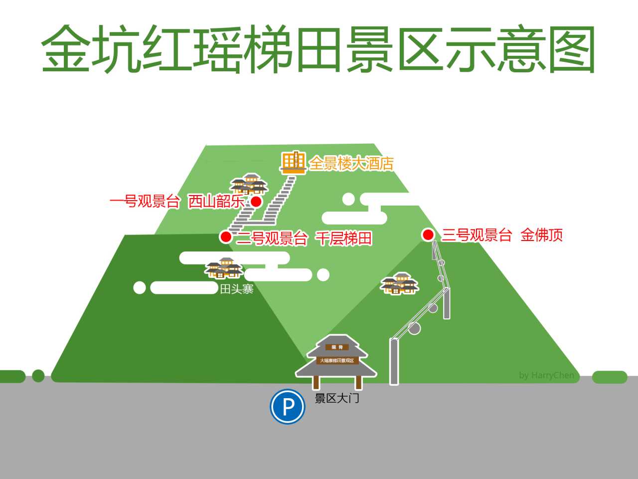 经过咨询酒店大堂的服务员,我们一天内可连续游玩一号和二号观景台,而如果想去三号观景台,酒店服务员建议从景区大门上去,因为如果游客考虑从一号观景台直接前往三号观景台的话,最近的路都是泥路,加上山路并不是那么好走,所以这次我们只走了金坑红瑶梯田的一、二号观景台的一侧,虽然三号观景台有缆车直达(双程价格110元/人,单程60元/人),但不顺路,而且第二天计划在游玩平安壮寨梯田后就返回桂林,所以三号观景台我们就没去。