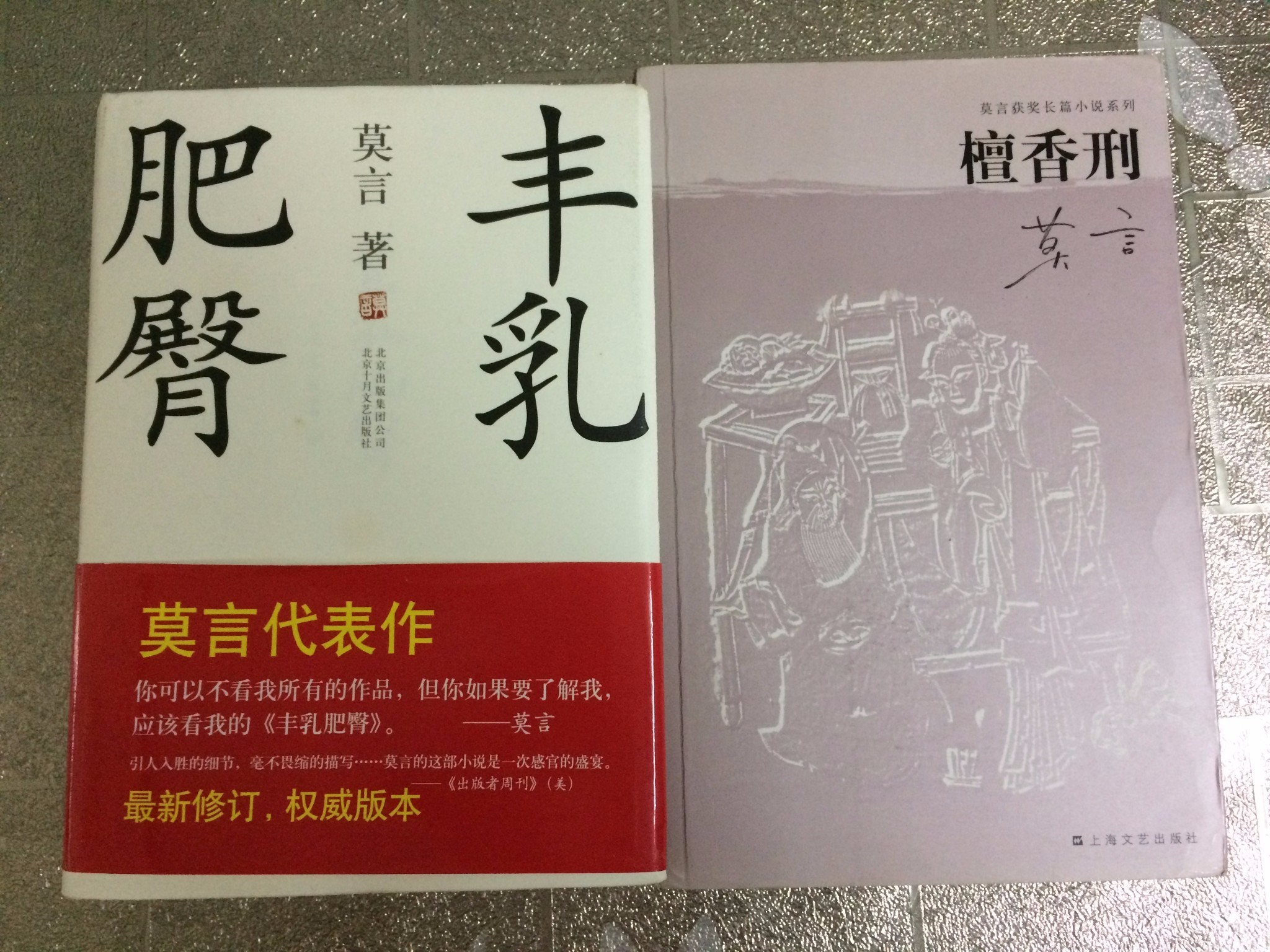 我拥有的第一本莫言小说是2008年的《檀香刑》。可是不太喜欢莫言的这种如同说书唱戏的叙事风格,看了一半就束之高阁了。在莫言还未获诺贝尔文学奖之前,我已经买了好几本莫言的书,不读看看也舒服。