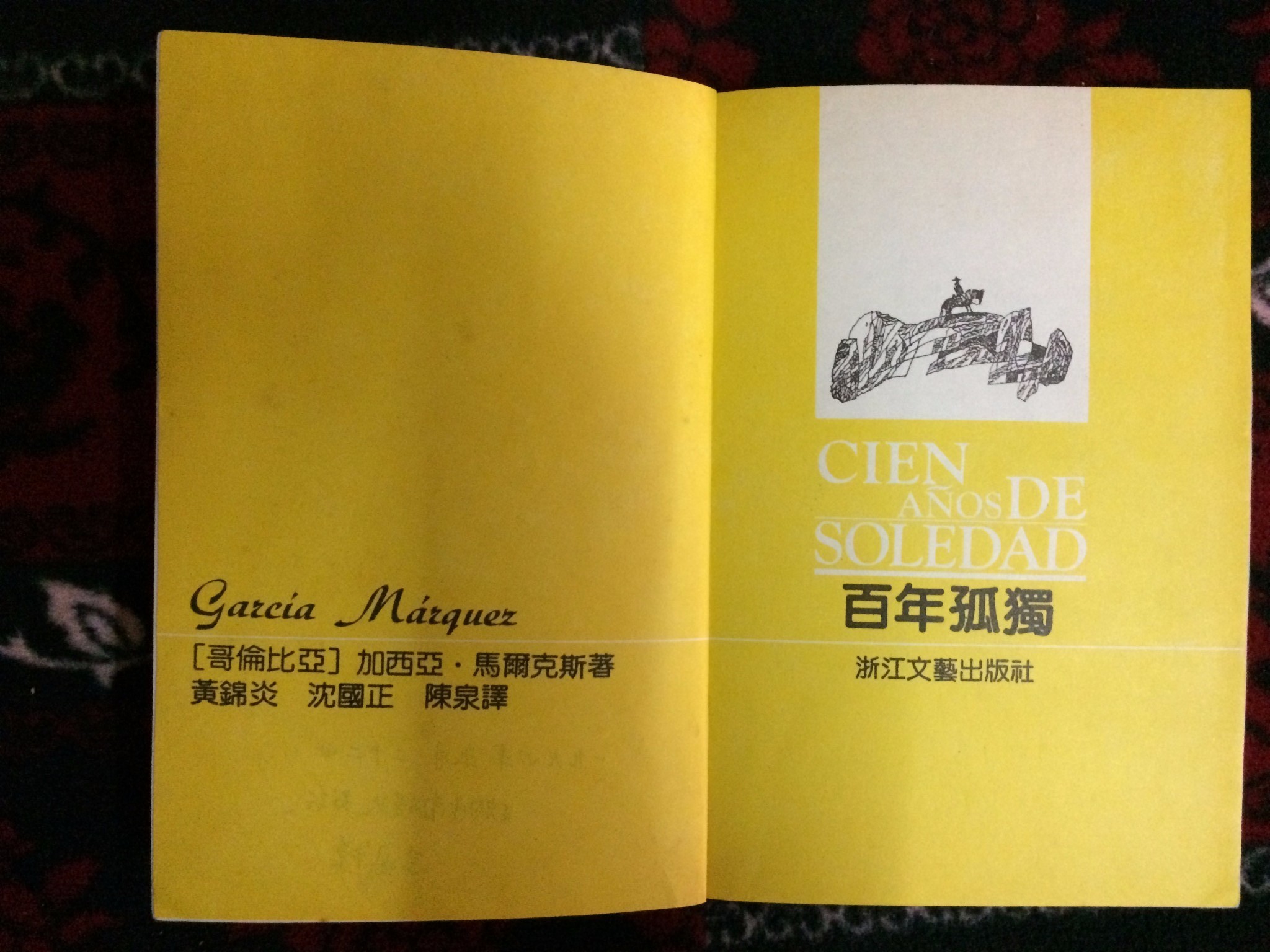 浙江出版社,给我印象最深的就是1994年买了本哥伦比亚作家马尔克斯的《百年孤独》(1982年诺贝尔文学奖得主),是沈国正、黄锦炎、陈泉三人合译的,而且是小五字,看起来异常吃力。拉美文学作品,以前我基本上没有涉猎过,当时对于魔幻现实主义的热炒也令我想一窥其风采,可惜一直买不到《百年孤独》这本书。一次逛街偶遇一小书店,竟然无意间看到了梦寐以求的《百年孤独》,虽然字小,装帧的也很普通,还是5.8元买下了,回去花了一个月啃完。里面的人名真是太搞了,我只好做笔记弄清他们的关系,才顺利的读完这本名著。