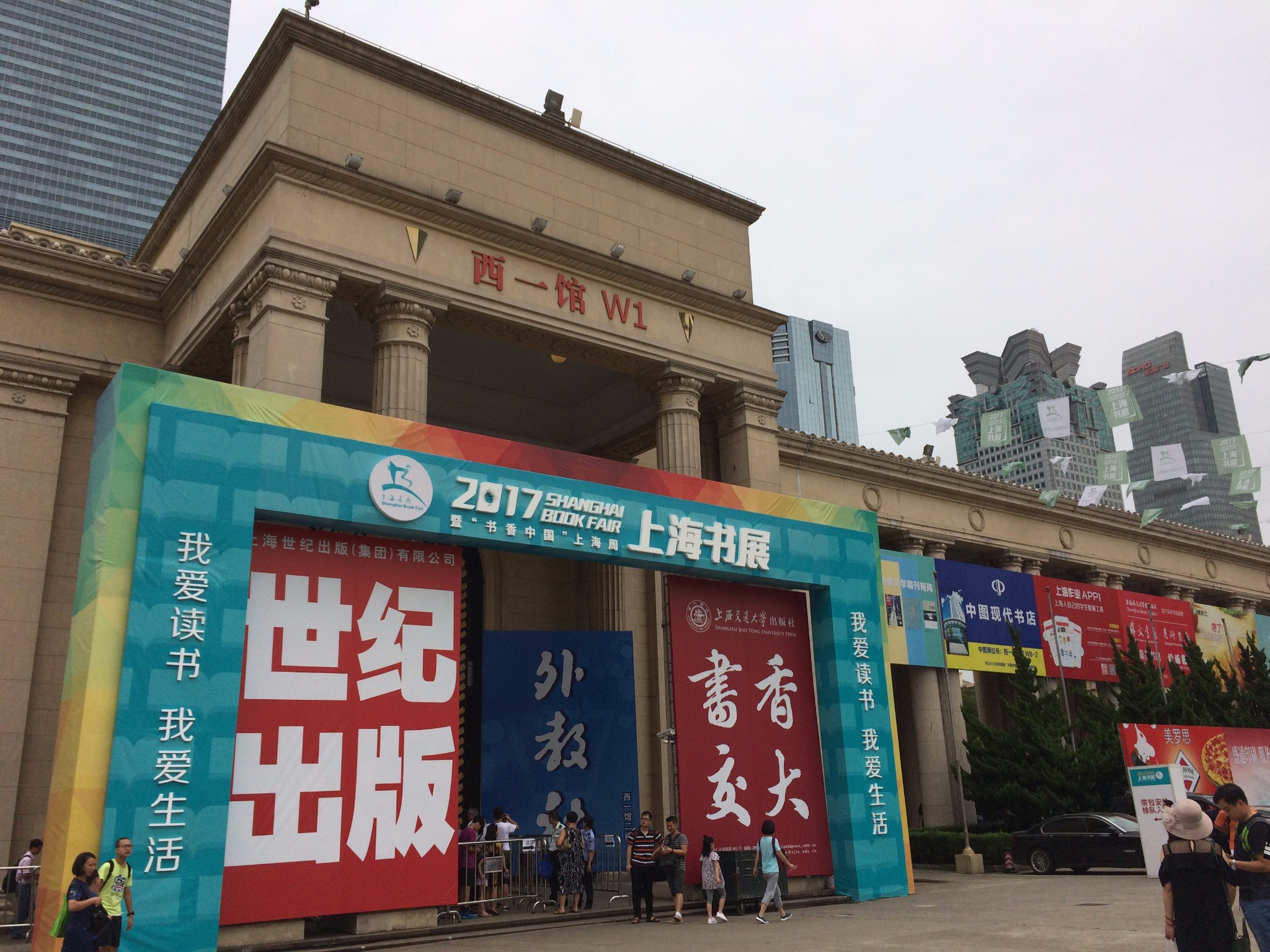 2017上海书展于8月16日至22日在上海展览中心举办。8月20日星期天,宝贝女儿要睡懒觉,我只好独自一人前往。8:50地铁7号线静安寺站出来走到铜仁路口,就眼见一字长蛇阵。以前也参加过几次书展,还是第一次排队购票入场,也许是来得早的缘故(9:00开场)。