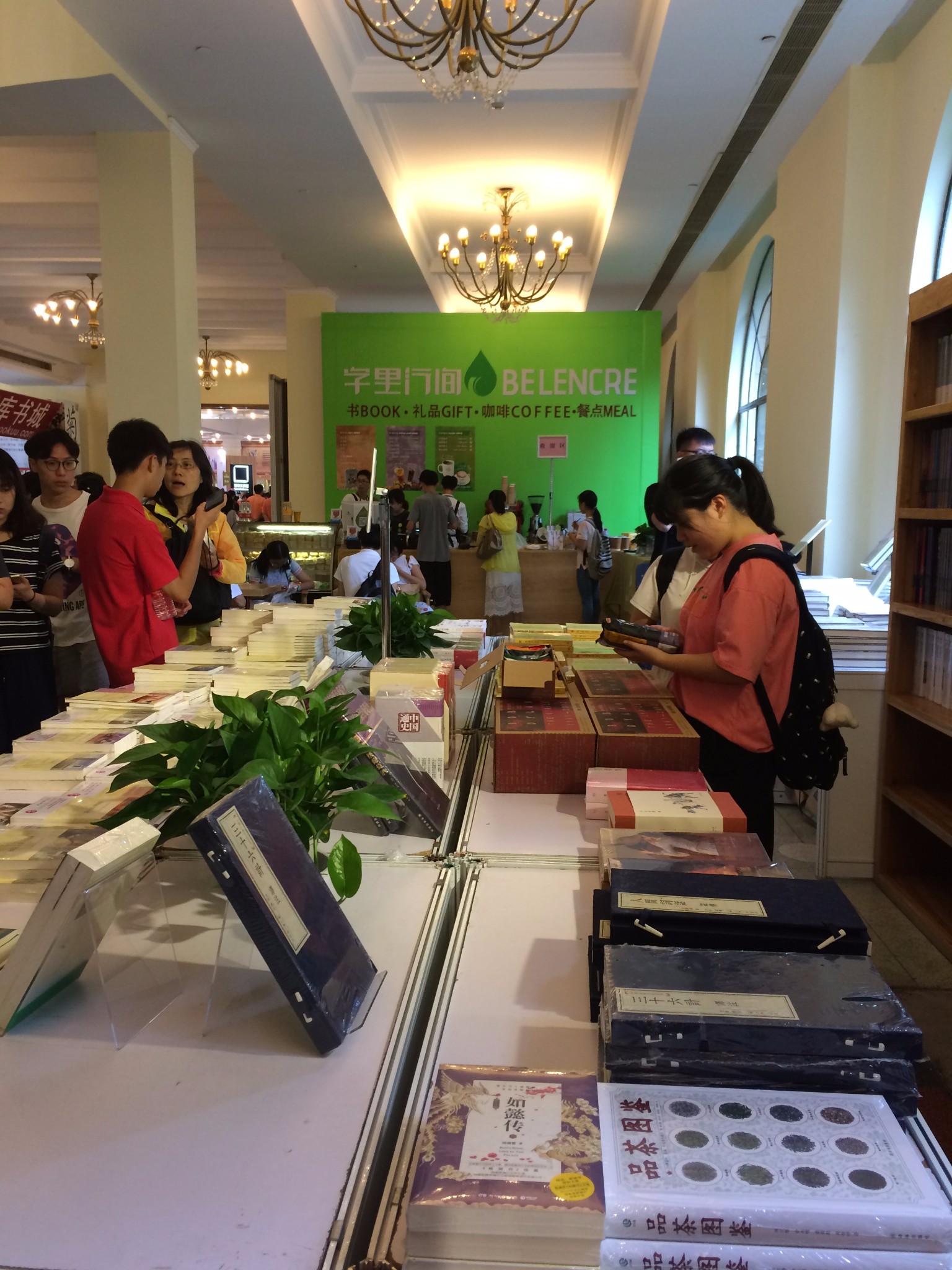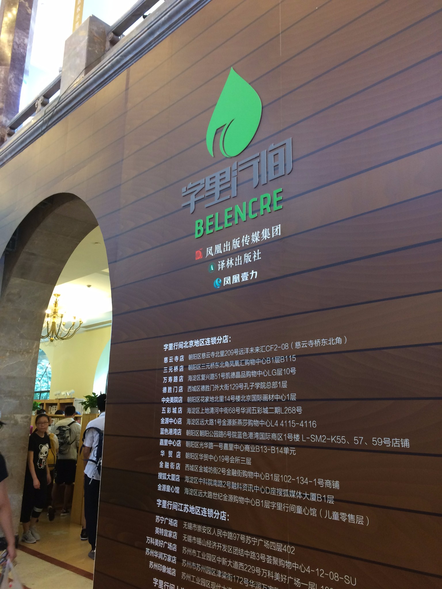 首先遇见了绿色水滴中间打开书页的LOGO --“字里行间 BELENCRE”,这是是凤凰传媒集团旗下的子公司:凤凰壹力旗下的会员制书店。“字里行间”出自梁简文帝《答新渝侯和诗书》:“垂示三首,风云吐于行间,珠玉生于字里。”“字里”代表源自文字的形式,思想的载体,即书本;“行间”代表跳脱书本的载体,延伸出更多的可能。“BELENCRE”(音:百朗客)源法语,为BEL与ENCRE的组合,意即“美丽的书墨”。也许寡闻,在上海我倒是没有看到过“字里行间 BELENCRE”书店。