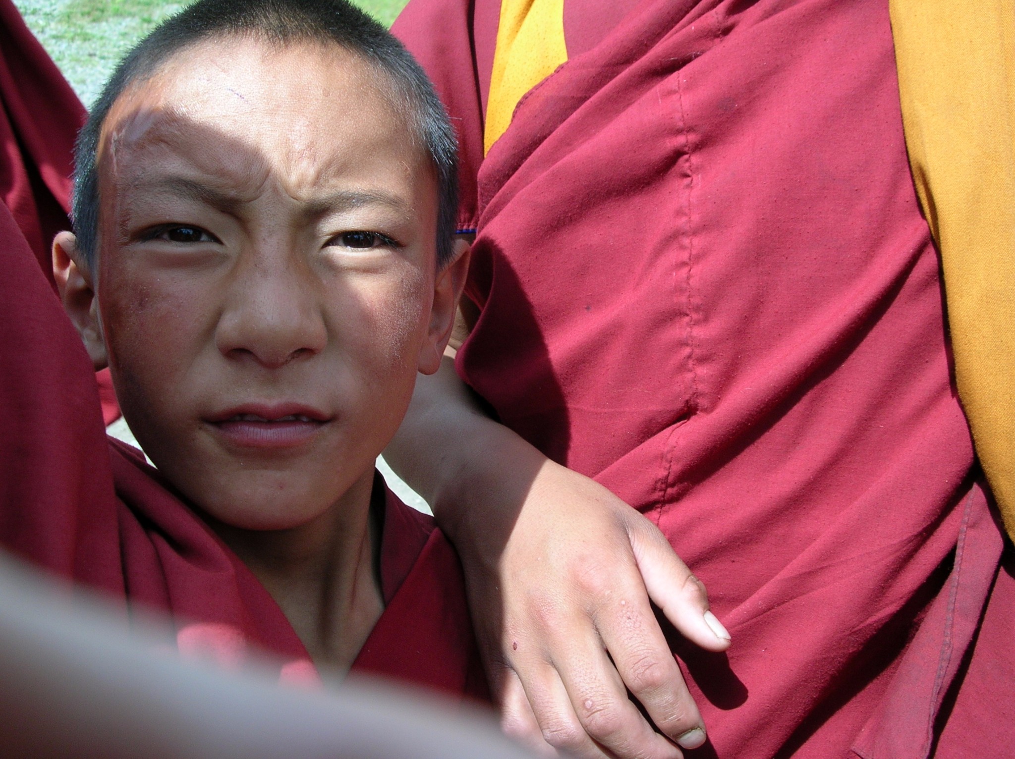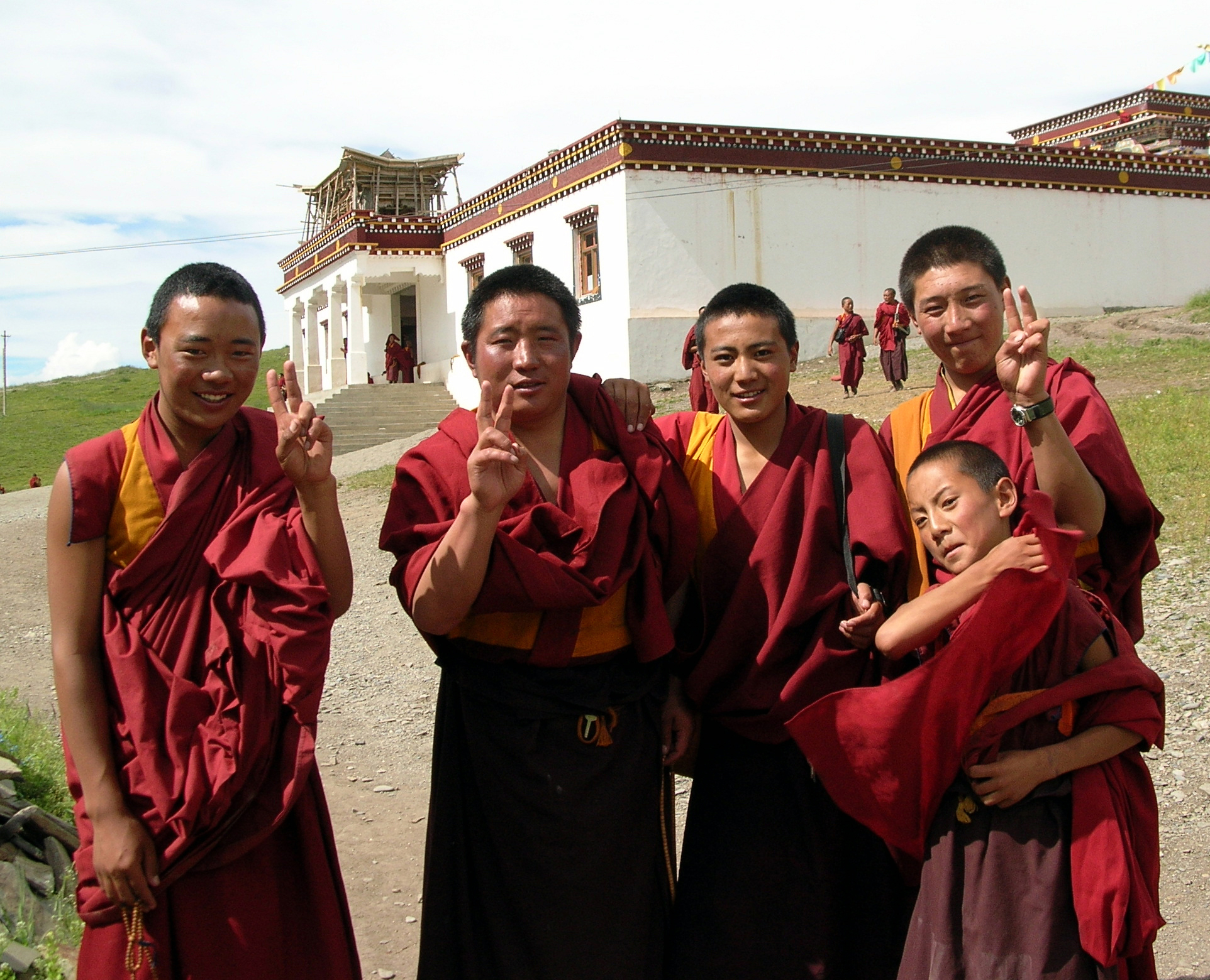 遇到一群下课的喇嘛,他们背着书包,拿着经书,还有的佩戴了佛学院的校徽,就象一群下课的学生。给他们拍照时,都争相打出内地曾经很流行的“胜利”手势来。