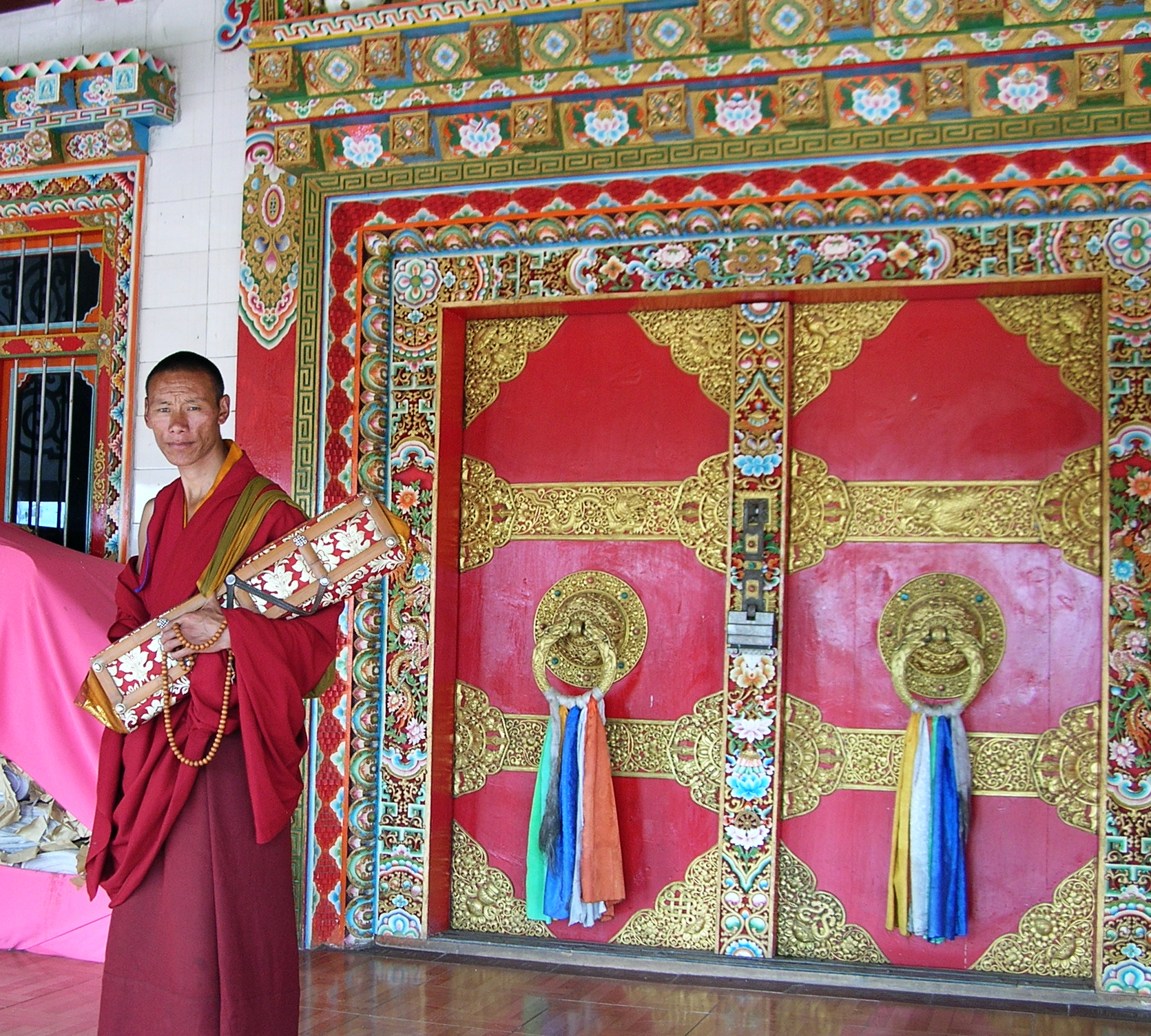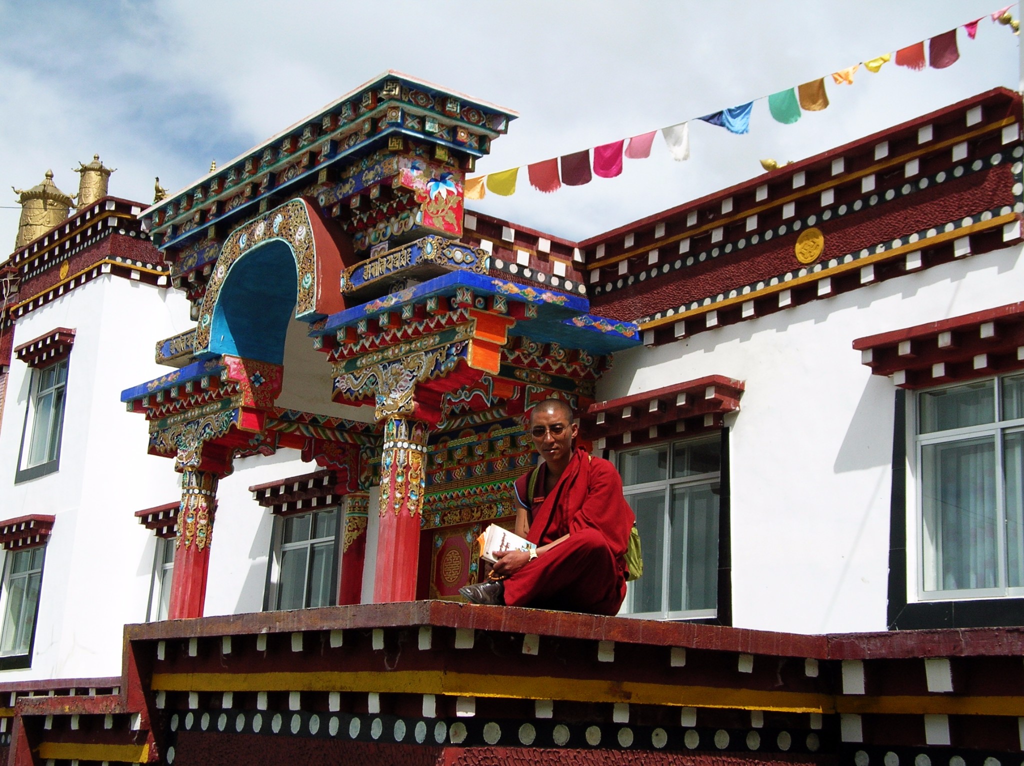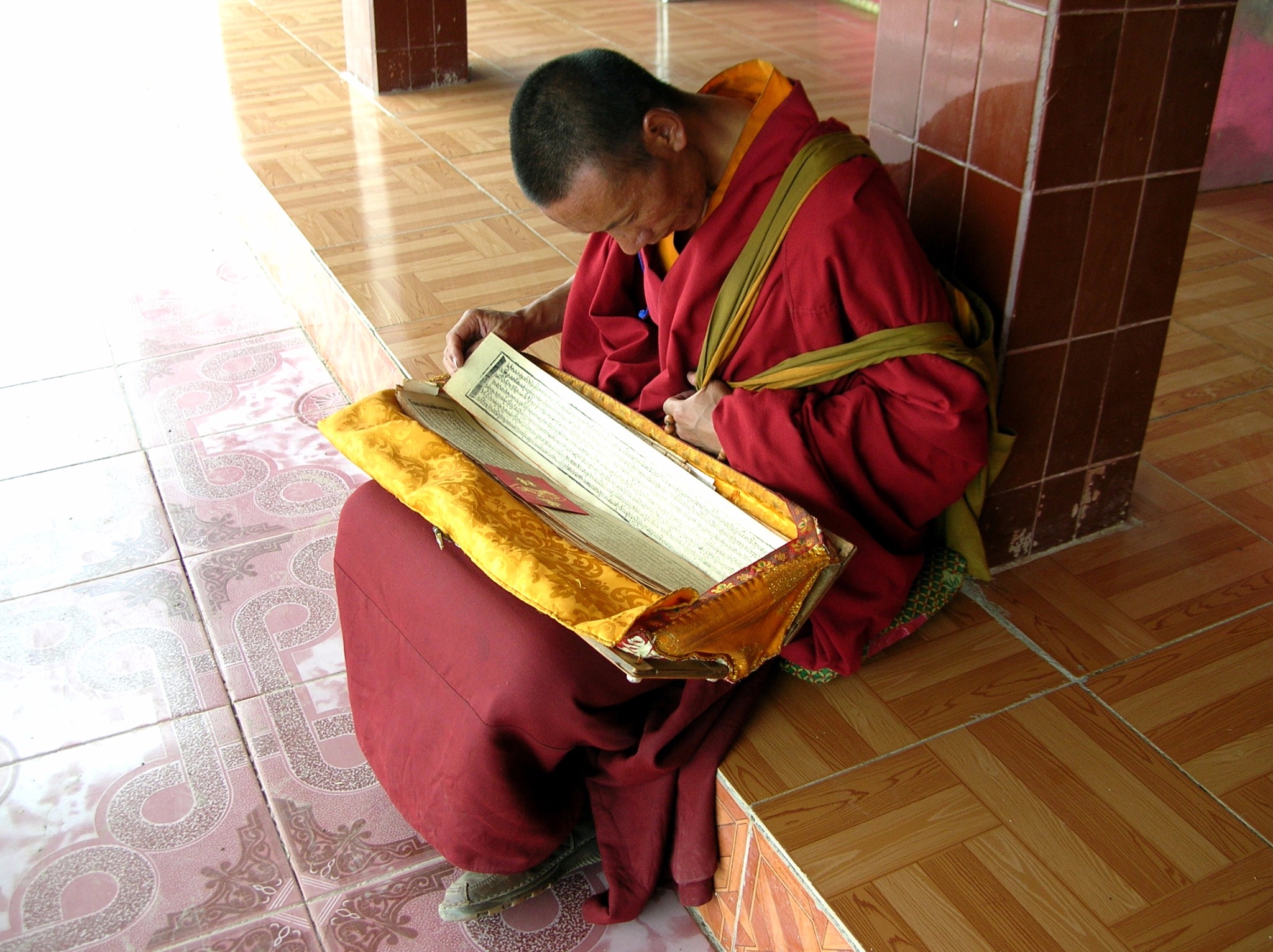 遇到一个抱着经卷的喇嘛,在廊下认真研读。