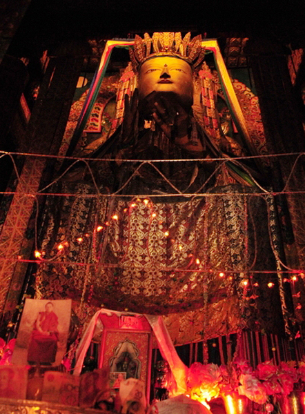 威严的强巴佛有19米高,是铜制镀金的。