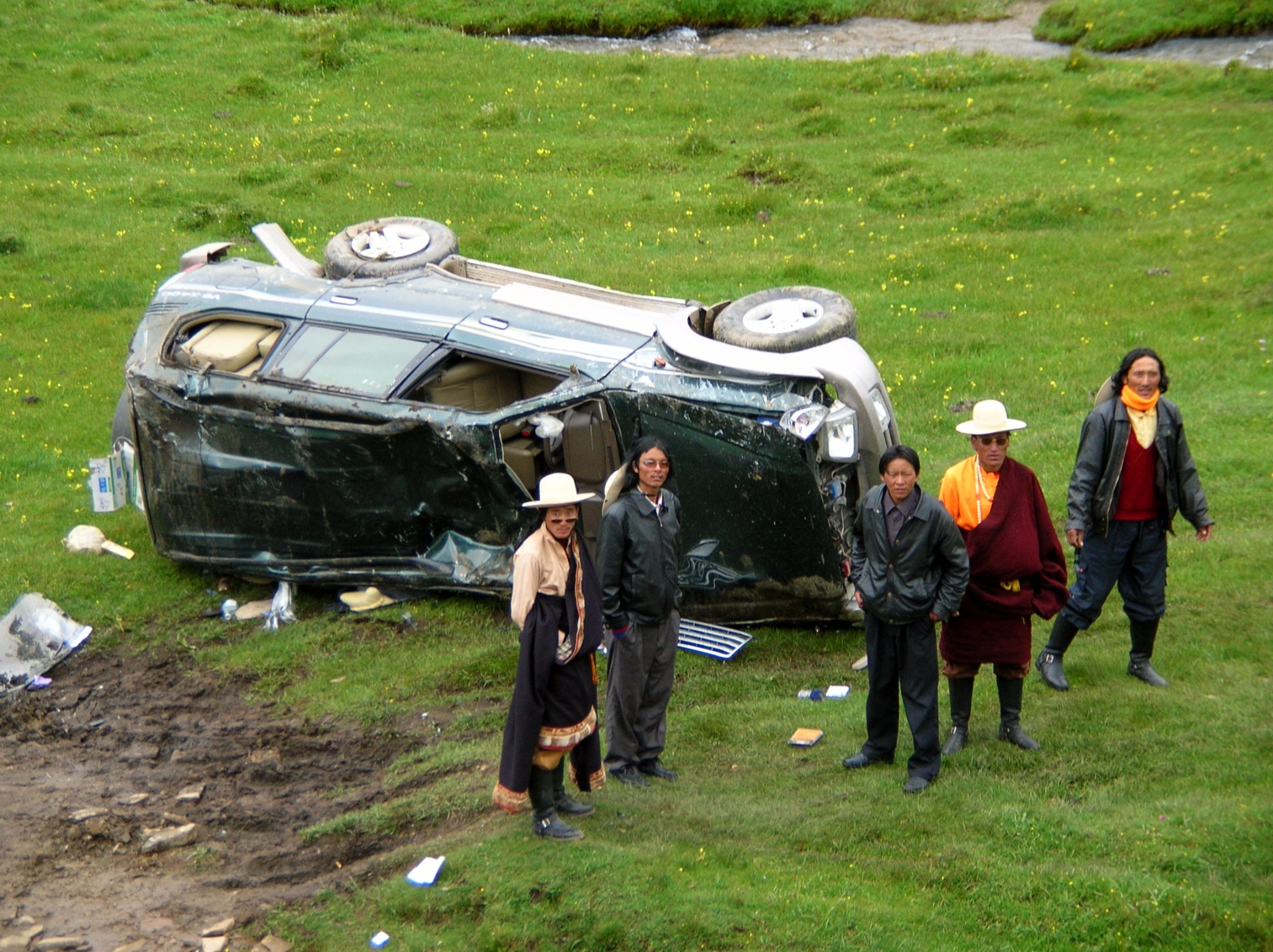 途中,看到一辆吉普车翻下路基,玻璃全碎了。听说人没事。有知情人讲笑话一般,说,驾驶员爬出车还叽叽咕咕骂到:倒霉,又TM翻了。看来不是第一次翻车,这驾驶员够生猛的。呵呵,道听途说,不得求证。不过,藏区有一些驾驶员确实比较生猛,你要没有极强的心理素质和超快的反应能力,还是别坐他开的车。