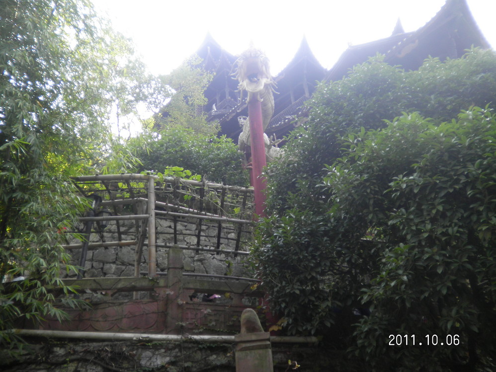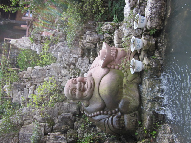 哎 一路上就在赶路,怕超过了导游规定的时间怕耽误其他人的时间。到达了天下第一桥的停车场,就开始吃午饭,哎,内容很稀烂,在那个吃饭的地方看到很到木雕,雕刻的真是栩栩如生哪,不过也价值不菲,一套一般得十几万。下午的浏览项目就是爬天子山,然后到十里画廊。体力不好的话强烈建议排队等索道,体力好的话,可以爬行下山,大概1:30分钟。哎,当时只顾往下冲,不掉队,也忘了环顾四周风景了。如果想观看风景也想省体力的话,也可以乘坐那个人工轿子。就像那种古装片里老爷做的那种轿子,由两人用肩膀架起,费用100元。因为我本来也是农民的子女,所以实在不好意思去乘坐那种轿子。大概用了一个半小时,就到了十里画廊,也有那种小火车乘坐,哎,无奈,那时候还没体会到腿疼,就还是步行到停车场。十里画廊那边的步行不叫轻松是平行,不用上下台阶,沿路风景也可以,建议走下去,大概就半个小时的路程,运气好的话还会碰到树上的小猴子,可以停下来耍弄一番。哈哈,貌似乱扔对猴子不太好。我们碰到的那个猴子真是胖。到了十里画廊的停车场就坐车出武陵源。准备下午游览黄龙洞。悲剧的是,都是办公室坐久的人体力都不太好,在加上早上三点半就起来了,实在太累,就取消了黄龙洞的游览计划,改为晚上去看那个表演。下午三点多在景区宾馆休息,等晚上看表演。原准备洗个澡在出去找吃的,悲剧的发现白天居然没热水,真是想死。还好小镇上,物品还是很齐全,价格也不贵,建议自助游的不用带太多零食,类似庐山山上的牯岭镇。去理发店洗了个头发,额,用手吹还加十块钱郁闷,不过还好一共30块钱。然后找了家火锅店吃东西,几餐都在旅行社的摧残下吃的素菜都快发疯了,终于今天吃到了荤真是不容易啊。不过味道也还可以,叫涮涮吧,三个人也就吃了80块钱,还算平价。