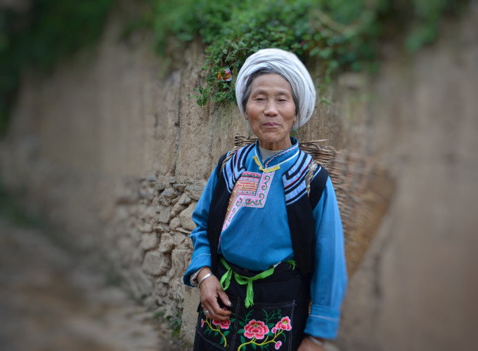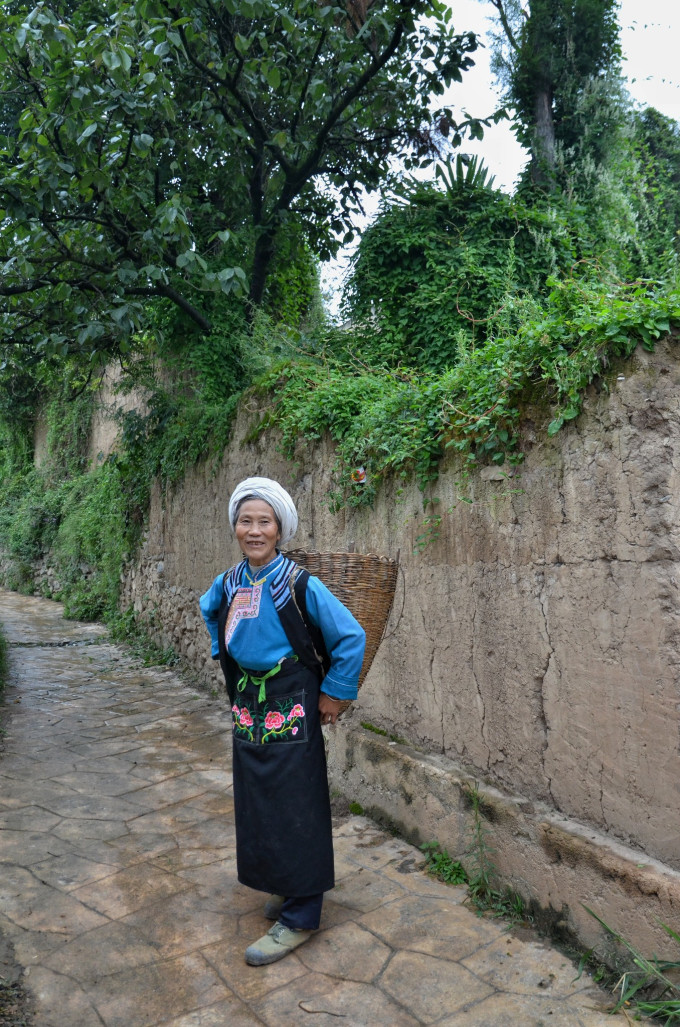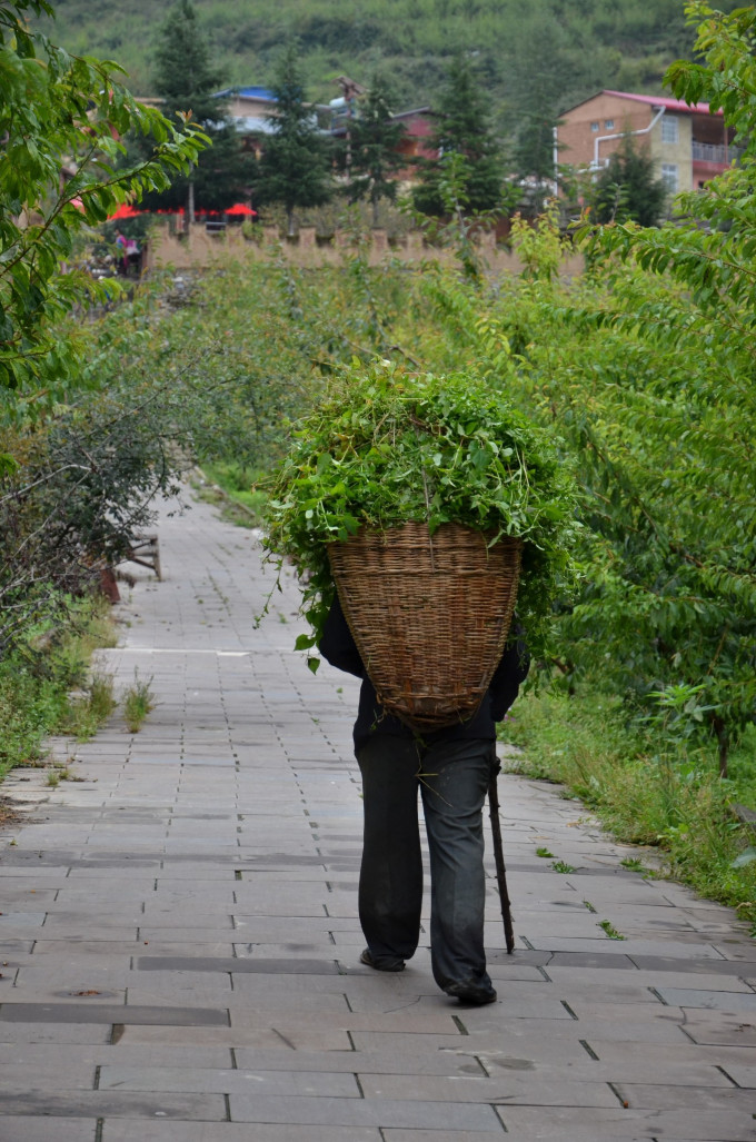 山里的老年人还在辛苦劳作,背了一背篓的猪草