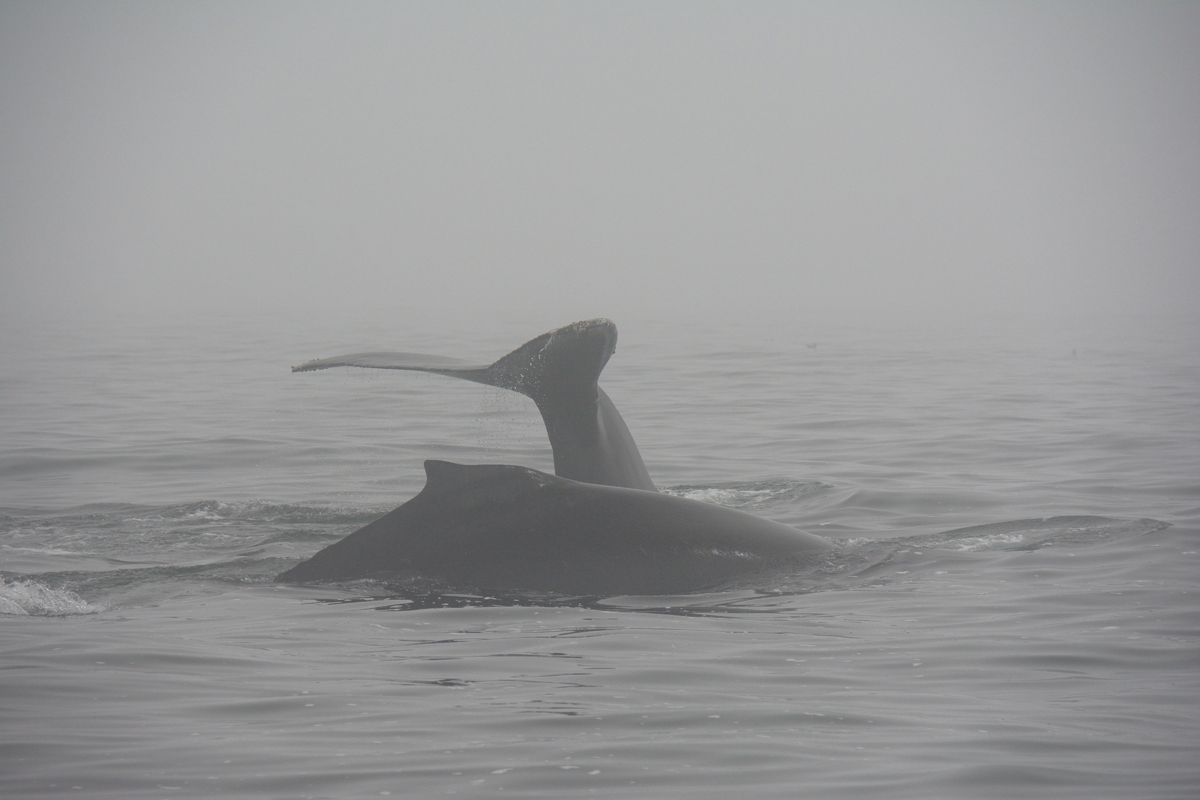 露脊鲸结队漫游,不时拍打海水,甚或顽皮地跃出海面,看来服务商还真没有虚言,果然百分之百能看到鲸鱼,可见海洋保护之好,人与动物之和谐。