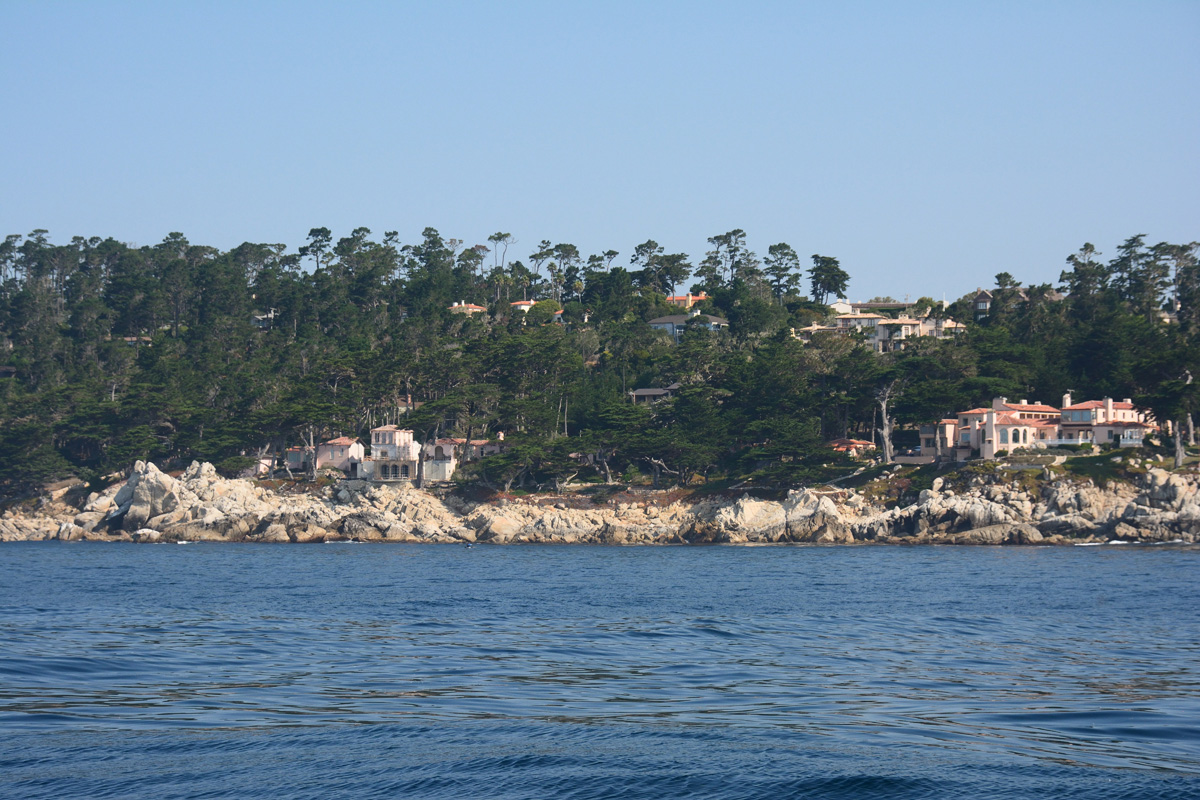 从近海观看 17英里大道,古柏,礁石,豪宅,确实景致怡人,情趣盎然,猛然想起北京城动辄上千万人民币的破旧拥挤公寓,骂一声穷鬼,六个排队的人里冲出五个千万富翁,唏嘘不止,感慨不已。