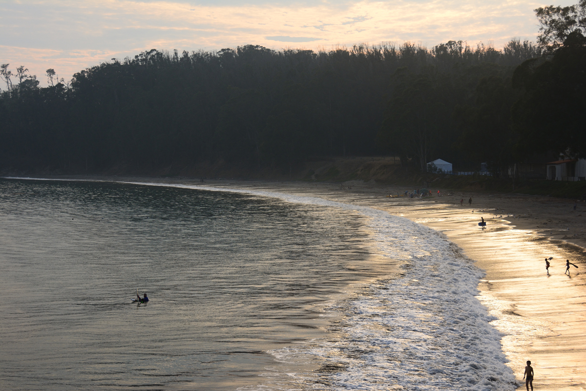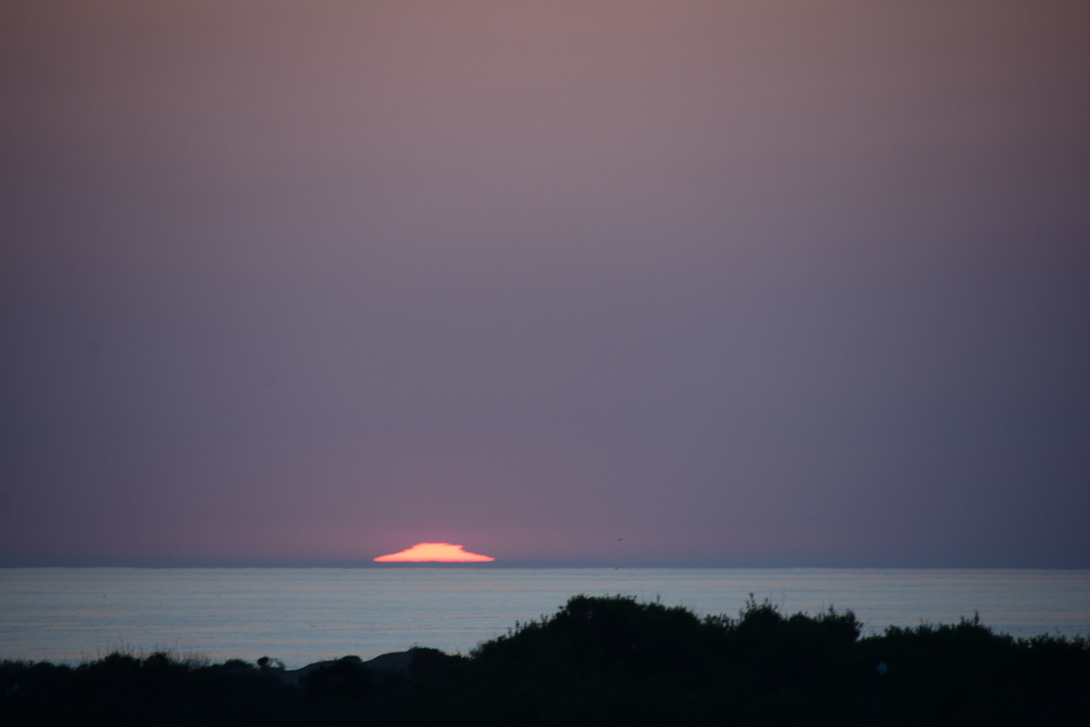 莫罗湾落日,太阳融化,沉入茫茫大海深处,天空浸染紫色,万物寂寥。