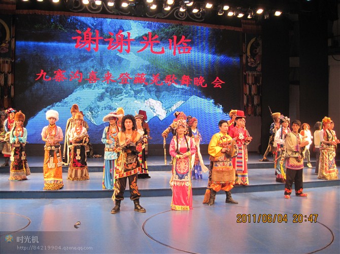 到了九寨沟 天堂青年旅社(三人间一晚120元。联系电话:0837-7764309/7764852,会免费接送九寨沟 景区哦,带我们去玩的司机师傅也很好,也是旅社的股东),这个旅社的地段实在很不错,跟着光头老板一路来到3楼平台,从这里竟然可以眺望到宽阔的山脉,平台上很随意地摆放着几张桌子和椅子,上面盖着很温暖的布。我们放下行李,换了身衣服,正准备去民族大剧院看表演,却发觉房间里的灯近乎失控,连电表也出现完全没有知觉的状态。我们赶不急时间,便将这个艰巨的修电表的任务交给了光头老板以及他的朋友们。