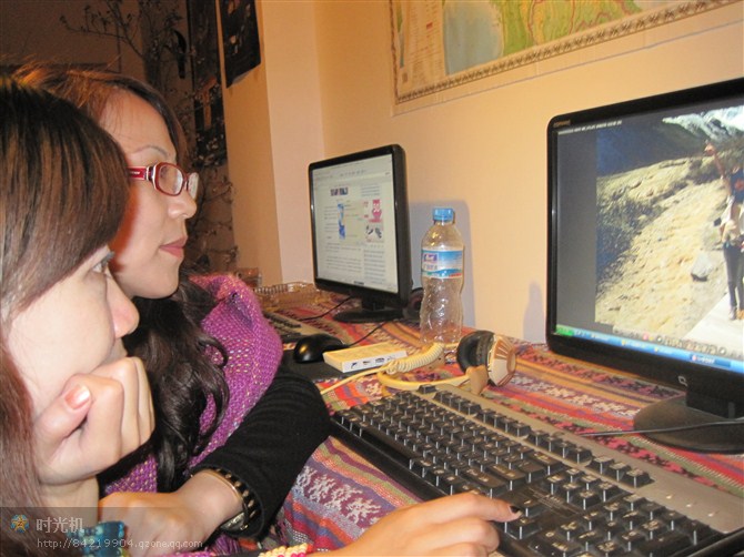 天渐渐黑了,也凉了起来,胡平坐在电脑前把白天拍摄的照片倒出来。我闲着无聊,东看看西摸摸,突然觉得放一边架子上的披肩很好看,于是试了一条又一条。店员可能也觉得我无聊到了极点,就走过来问我们要不要吃兔头,我看看塑料袋里的食物,实在有点残无人睹,赶紧摆手说已经饱了。