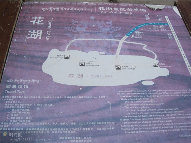 每天15:00在黄龙 有一班返回九寨沟 的公交班车,往返40元。我舍不得包车的巨额费用,便在旅游集散中心里一边点头哈腰一边装傻卖笑,好不容易打听到了我们要坐的车的停车地点。在车上,早晚温差的巨大让我们的喉咙渴得快要冒烟了,售票员时不时给我们说上一段九寨沟 的故事,成了我们这一路唯一的兴奋剂。出于信任以及贪图小便宜的心态,我们也让她帮我们买晚上演出的票,但比较不幸的是,最终交到我们手上的却不是杨丽萍的《藏谜》,我和毛毛开始吵得不可开交。