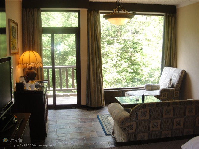房间里的空间很大,透过大大的玻璃可以看到窗外美丽的风景,还有个小阳台哦