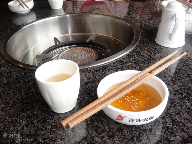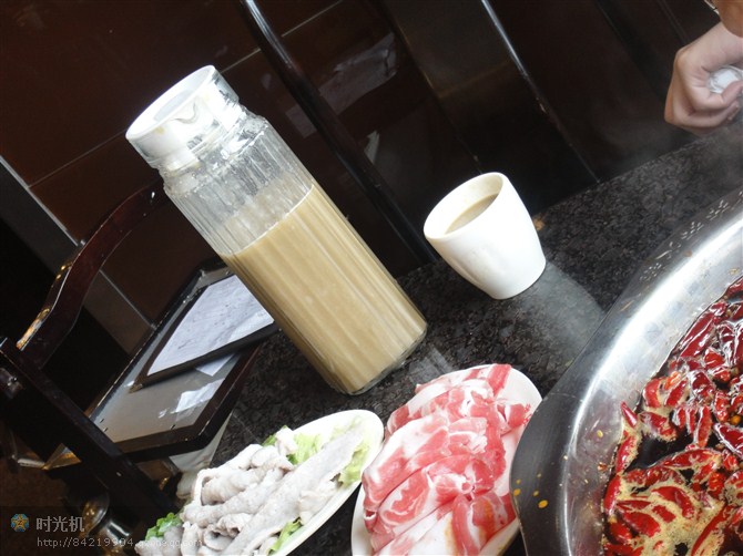 从一家小杂货店门前路过,从右边的大门进去,上楼梯,终于能笃定地坐在台面上,叫来服务员大姐,翻开菜单,大点特点,用笔在一张纸不停重复着打勾的动作,直到一大锅热腾腾鲜辣鲜辣的鸳鸯锅底搬上桌来。旁边的小碟子里,是我们第一次见到的神秘调料。