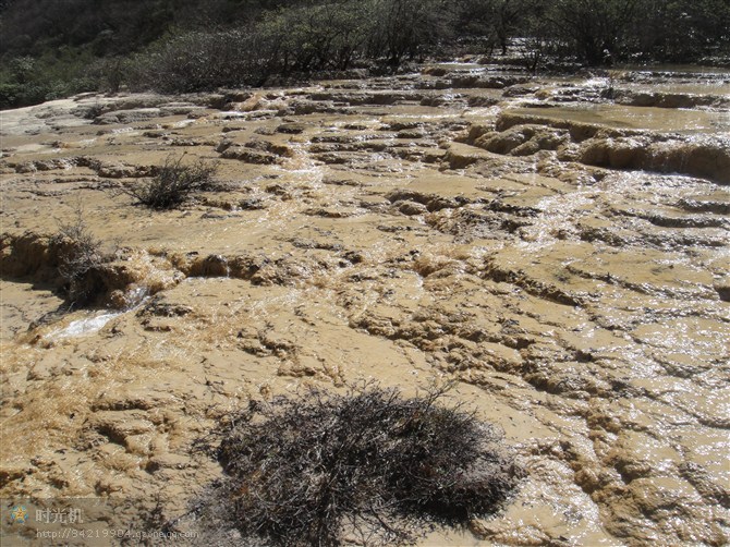 这些被水流冲击而成的黄色石头是这里的一大特色