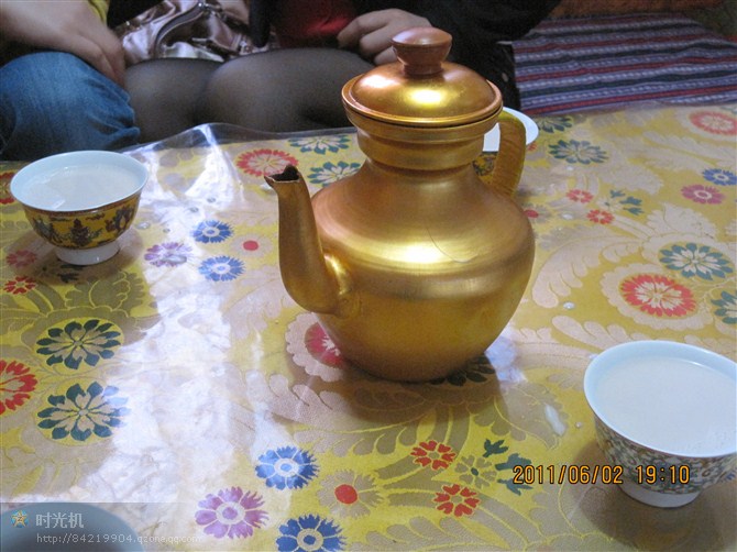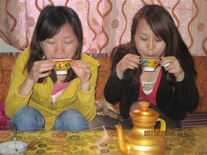 喝酥油茶咯,虽然不是很正宗,哈哈