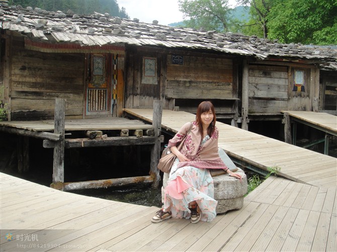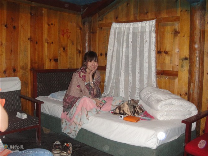 接着,我打电话给小杨家,便有人出来接应我们,带我们走进一间旧旧并且全是木头的房间,房间的大门用一把厚实的铁锁紧锁着。开门进去,有一股阴涩的味道,可能由于很久没有人住的关系。我走向最里面的一张床,毛毛睡最外面,胡平睡当中,当大家把所有装备整理出来后,最可怕的事情发生了——所有人的床单上竟然还有很多很多从天花板上掉下来的灰,连毛毛的被子也是黑黑的。然后,毛毛崩溃了,不停得找房子的主人,并且一而再再而三得要求换床单,换被套,甚至换房间,但得到的最终的回复无非是我们在大惊小怪,丢个被套给她,自己爱换换呗。那一晚上,因为房间的窗子没有玻璃,吓得我把披肩裹在头上睡觉,生怕飞进个虫子来咬我,少数民族的生活确实很艰苦啊……幸好,小杨家的卫生间还算干净。早上,我们耐心地听小杨教着我们如果逃过九寨沟 的检票大队,接着很心有余悸地跟着游客的大部队往民族村里面走,再一同走出村口,很幸运得做上旅游车,开始徒步长海 。再后来回忆起那天住宿的情景,却感慨我们跟着小杨家一起吃晚餐和早餐,虽然菜色一般,却吃得有滋有味,另外,他家的猫也很是可爱。