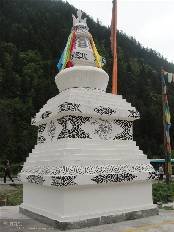 树正寨民族村前的白塔,毛毛说白塔不能合影,但我忍不住呀!