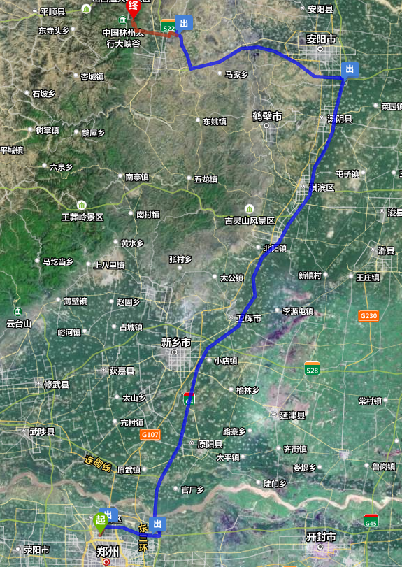 安阳以西约八十公里,有林县。这里因两处而闻名,其一是林县所在的三省交界地区周边是全国乃至全球食管癌发病率最高的地区;其二林县这里因战天斗地时代的红旗渠而闻名全国。现在,撤县建市,叫林州市。这次要去的地方,就是位于林州的太行大峡谷。峡谷的东西两岸,分别是河南和山西。就如碛口古镇和壶口瀑布东西两岸分别是山西和陕西一样。峡谷的北端,延伸入河北境内。所以,这是个三省交界之地。 自驾 从郑州出发,大概260公里的样子。
