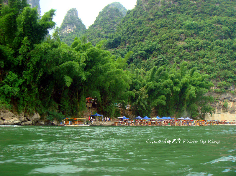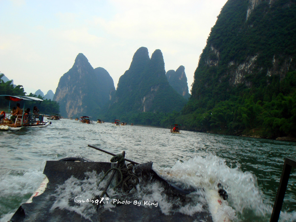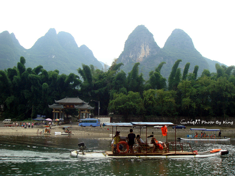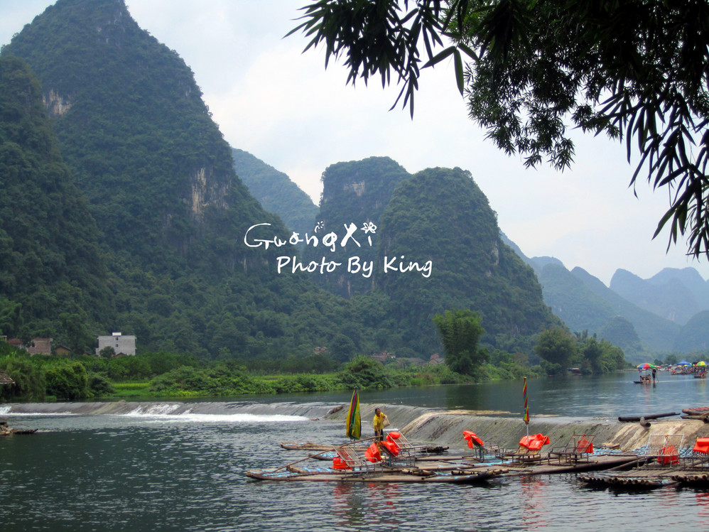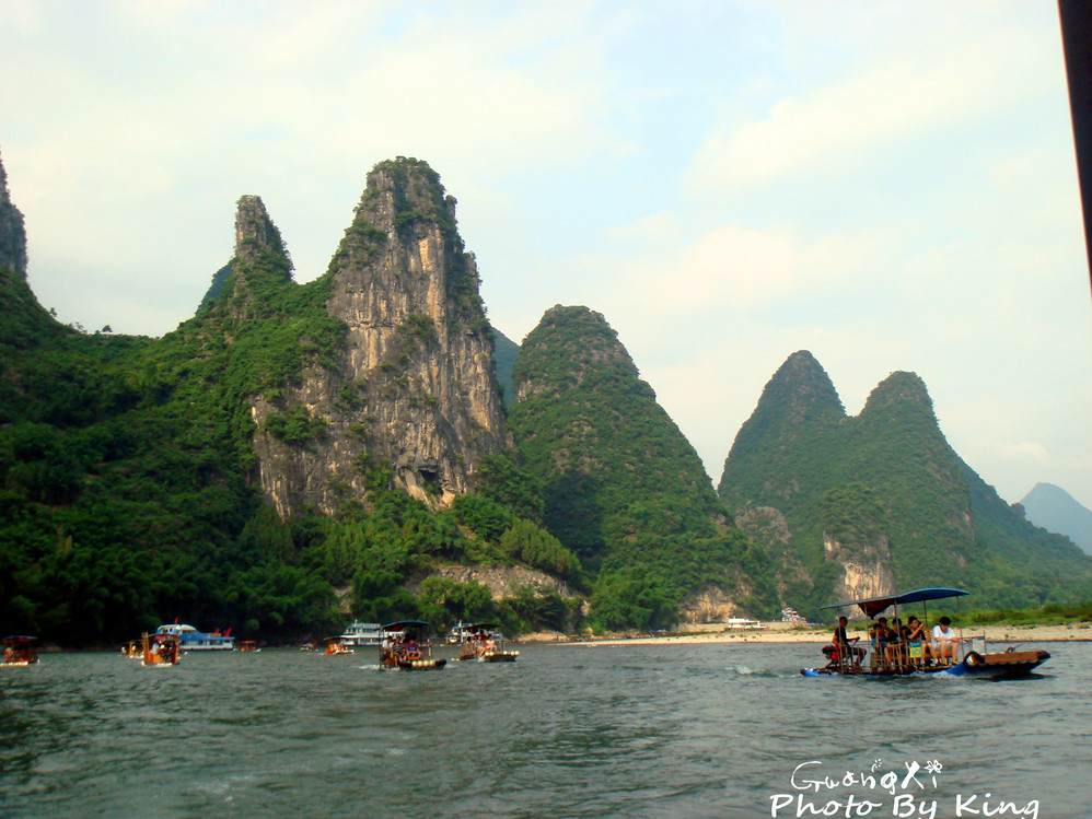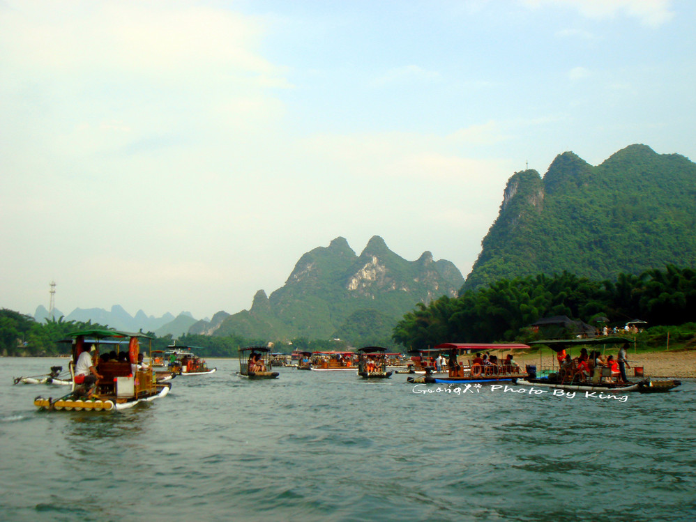 快到了,看到越来越多滴竹筏,有从兴坪码头上来滴,有和我们一块下去滴,漓江 突然变得不再宁静,可青山秀水依旧存在。。。。。