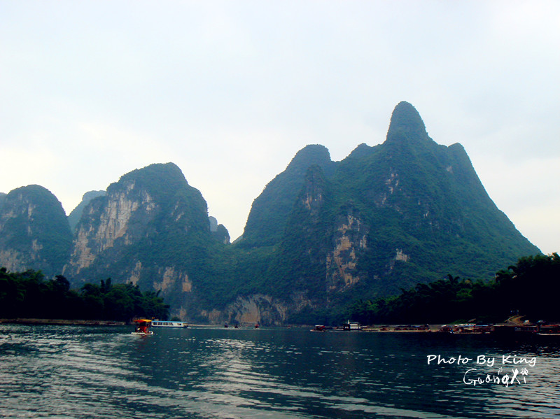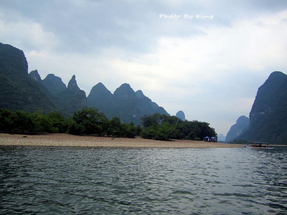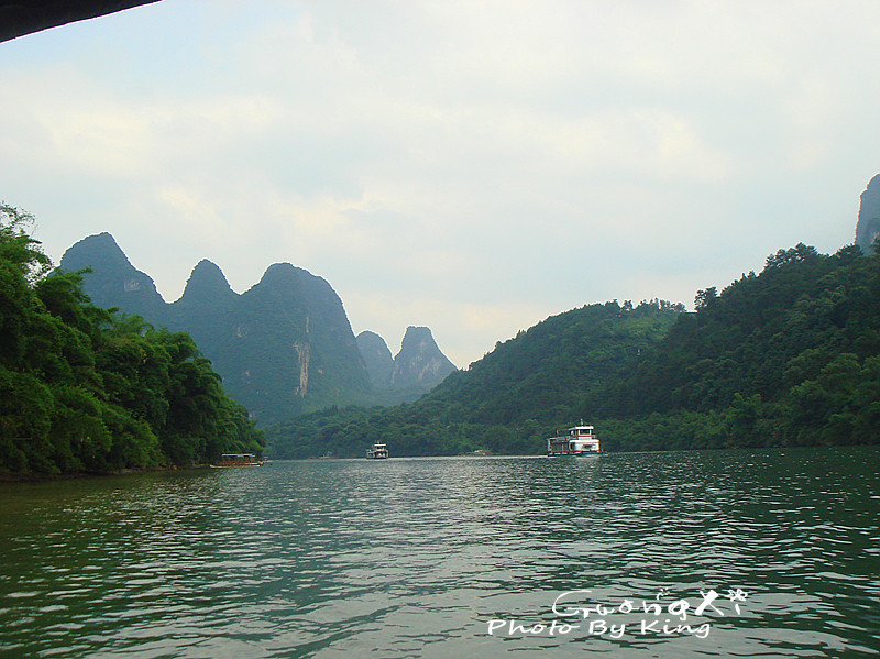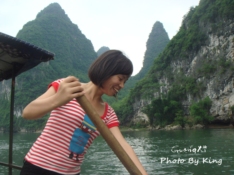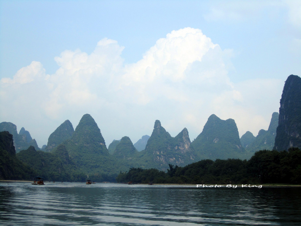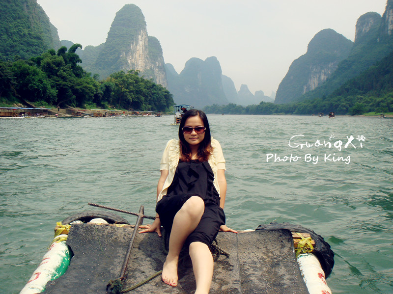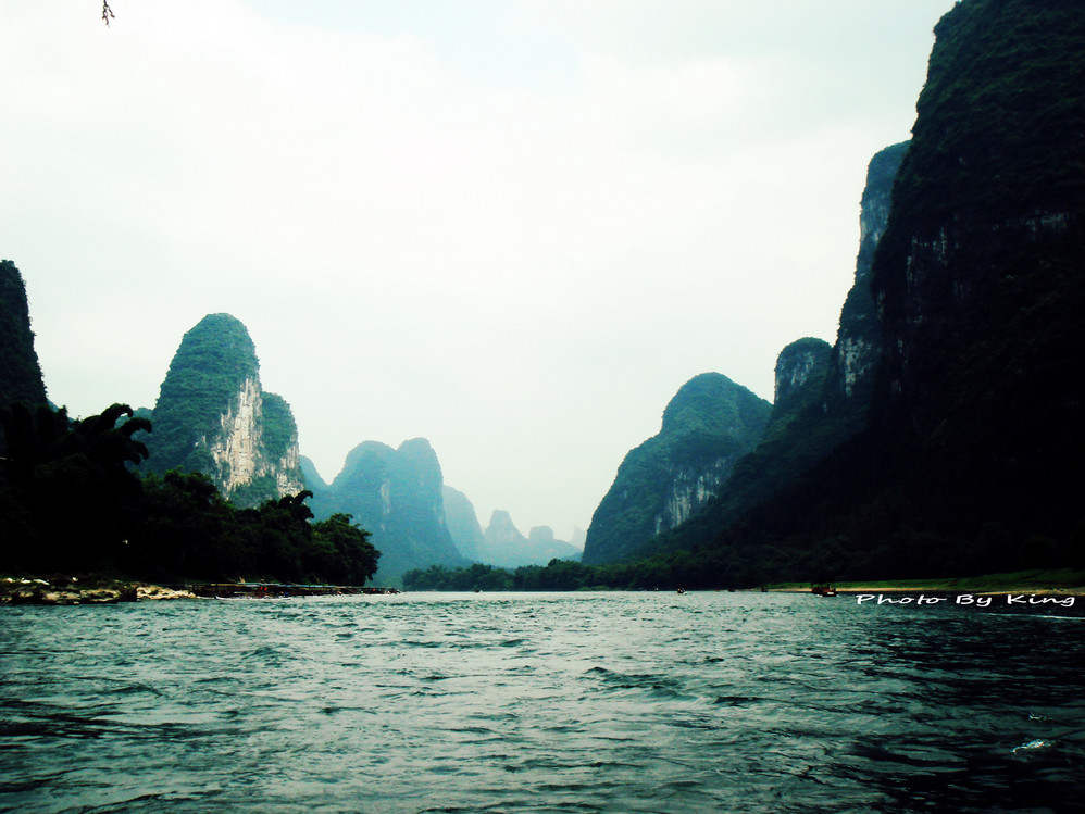 快到了,看到越来越多滴竹筏,有从兴坪码头上来滴,有和我们一块下去滴,漓江 突然变得不再宁静,可青山秀水依旧存在。。。。。