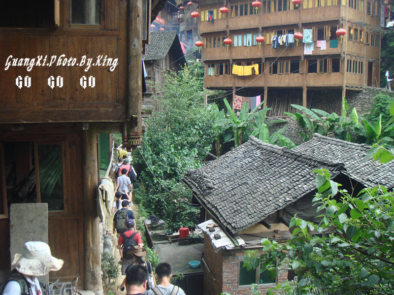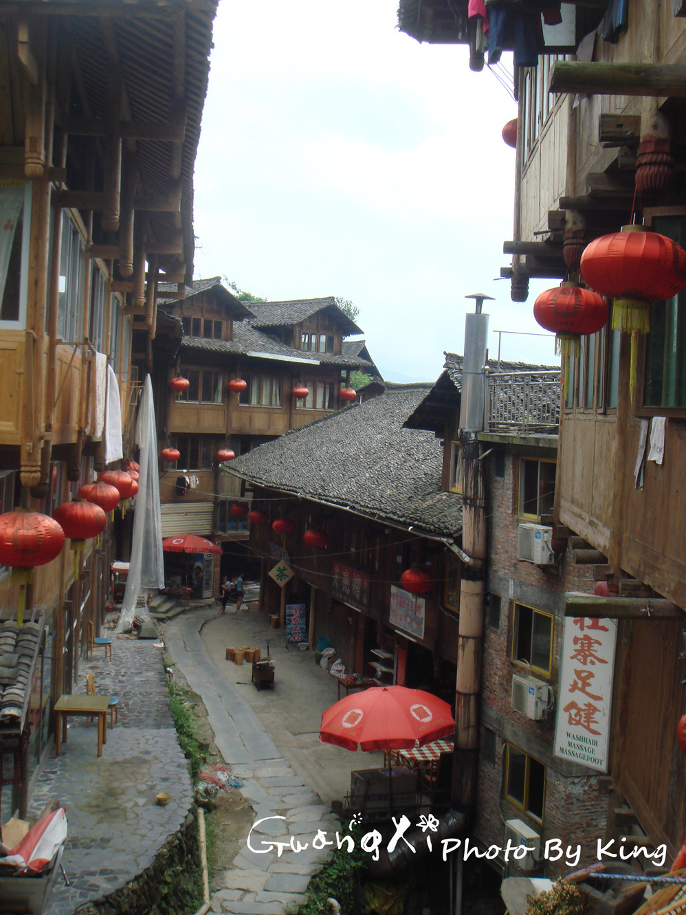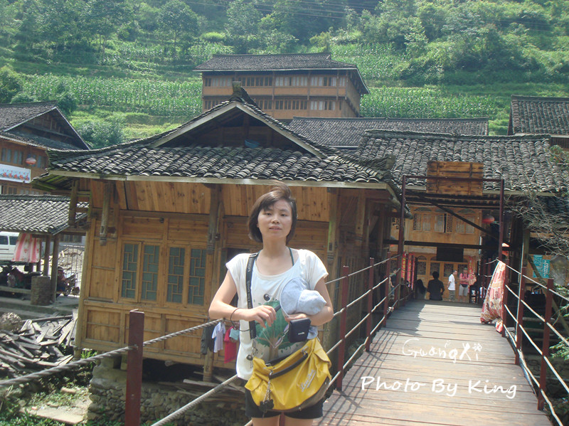 到了大寨门口下车,出示通票,走一小段路就看到下面の风雨桥。里面有个漂亮の姑娘迎接大家,可惜就是不给照相。在寨里,如果你想和寨里的人照相,你是需要礼貌请求的,如果不是的话,人家是会觉得你不礼貌,而且啊,人也开始商业化起来了,有些人如果你想要和他拍照,他会收取你十元肖像费滴,嘻嘻
