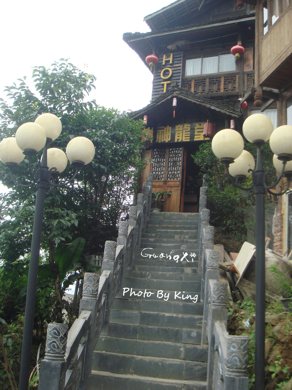 爬了大概40分钟,到了寨顶,我们就孙狗肉的安排下到一家饭店吃饭,哦的神啊,人多的啊。饭菜自己点,寨的饭菜不便宜,一个青菜40多,伴炒肉70多,凭什么?老板说身在寨,出城扫货不容易,有血有汗@@@所以背包客们可以自备经济泡面囖。