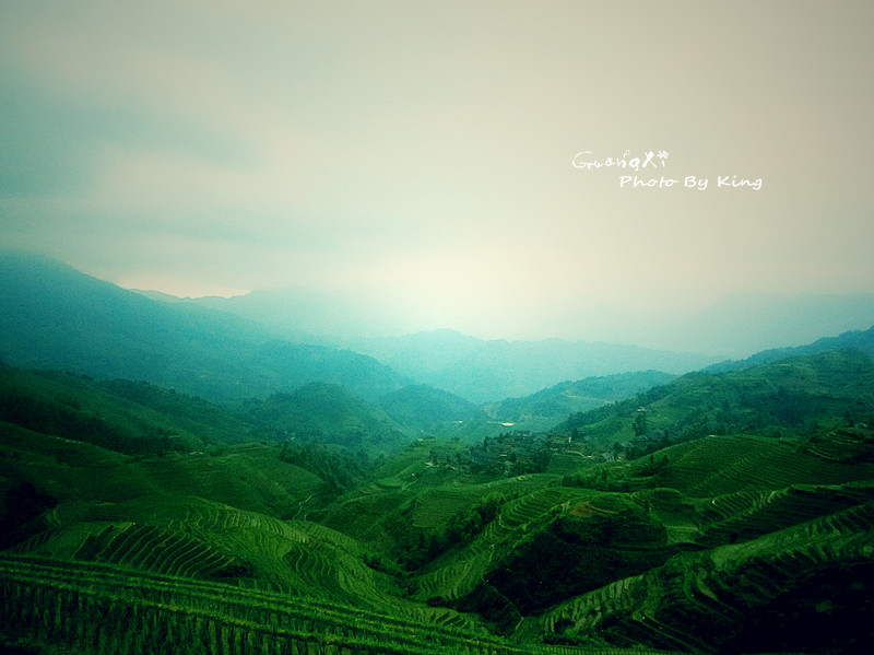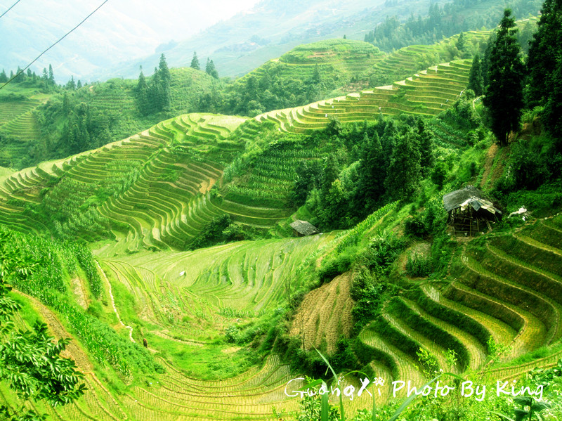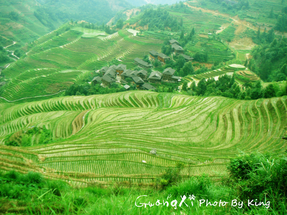 广西 大部分行程都是那里的好友大叔建议安排的,后来因为时间问题有些改动。在此对大叔感激不尽,遗憾的是因为大叔工作关系,米有见上一面,哎哎哎!!吃了早餐后,我们直接否掉桂林 市区,联系到事先大叔给我们安排的导游孙狗肉,直奔龙脊梯田 。之所以称导游为狗肉,是因为对当地导游的亲切称呼,入乡随俗吧,咔咔!!