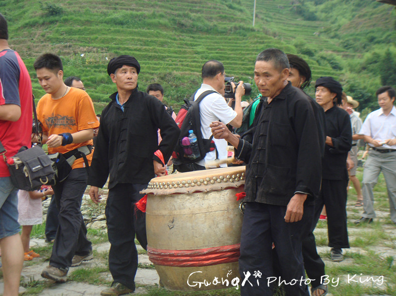晒衣准备完毕,敲起锣鼓,吹起唢呐出去寨口迎接嘉宾囖。。。