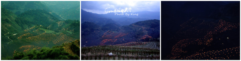 2号景点の所有梯田都点上了火把,很美很美。大哥耍懒,第二次木有带上大炮,后悔之极,立马掉头回去客栈拿,跑带走来回30分钟,回来时候错过了最精彩一刻,火把+烟花一起表演。哈哈,气死大哥了!!所以卡机拍出の效果也就如下了!大哥为此气了自己两天!哎,发烧友都这样!采照永远就在那一瞬间,错过了,什么都米有了,能不气么?哈哈。。。话说回来,梯田很美,站在山顶看烟花更是美轮美奂!!!