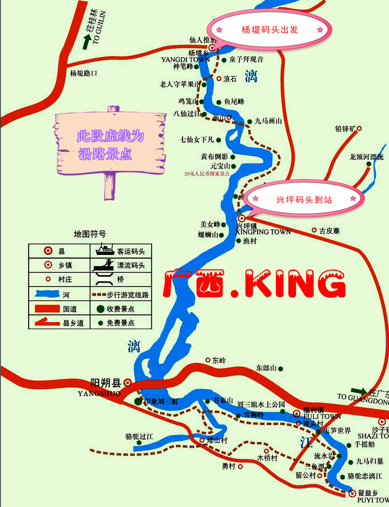 3、 县城-工农桥-阳朔 胜地-骥马-旧县-仙挂桥-遇龙桥-白沙 -县城
