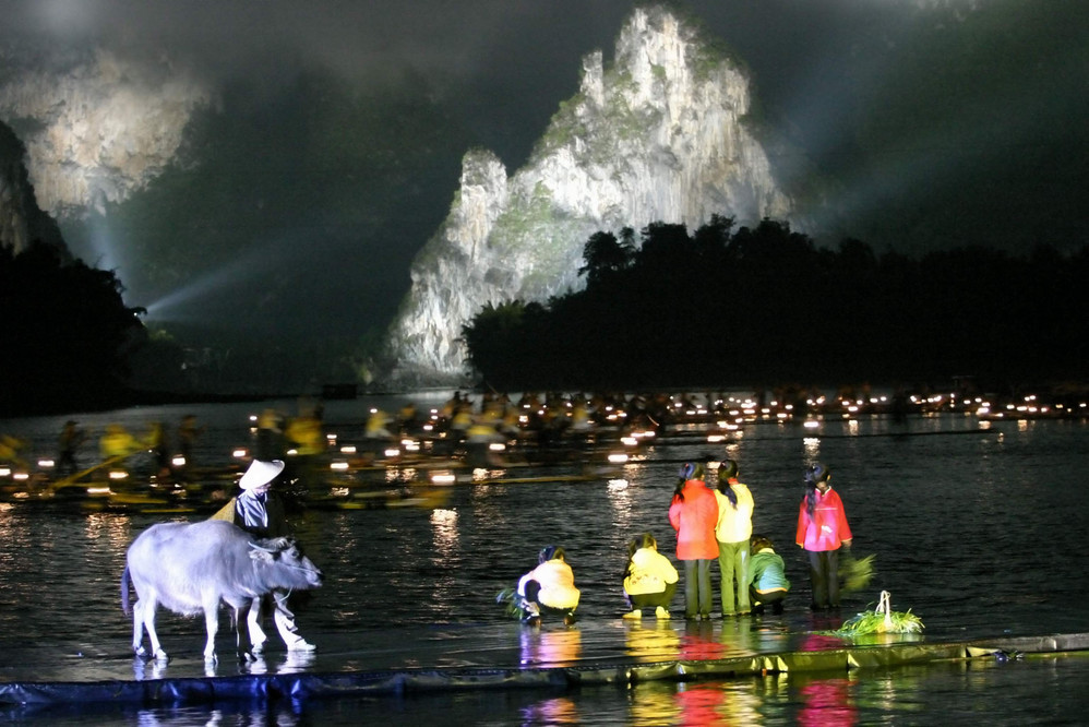 骑了一天自行车了,准备去观看印象刘三姐。这是一出由老谋子执导滴大型山水实景剧场表演。