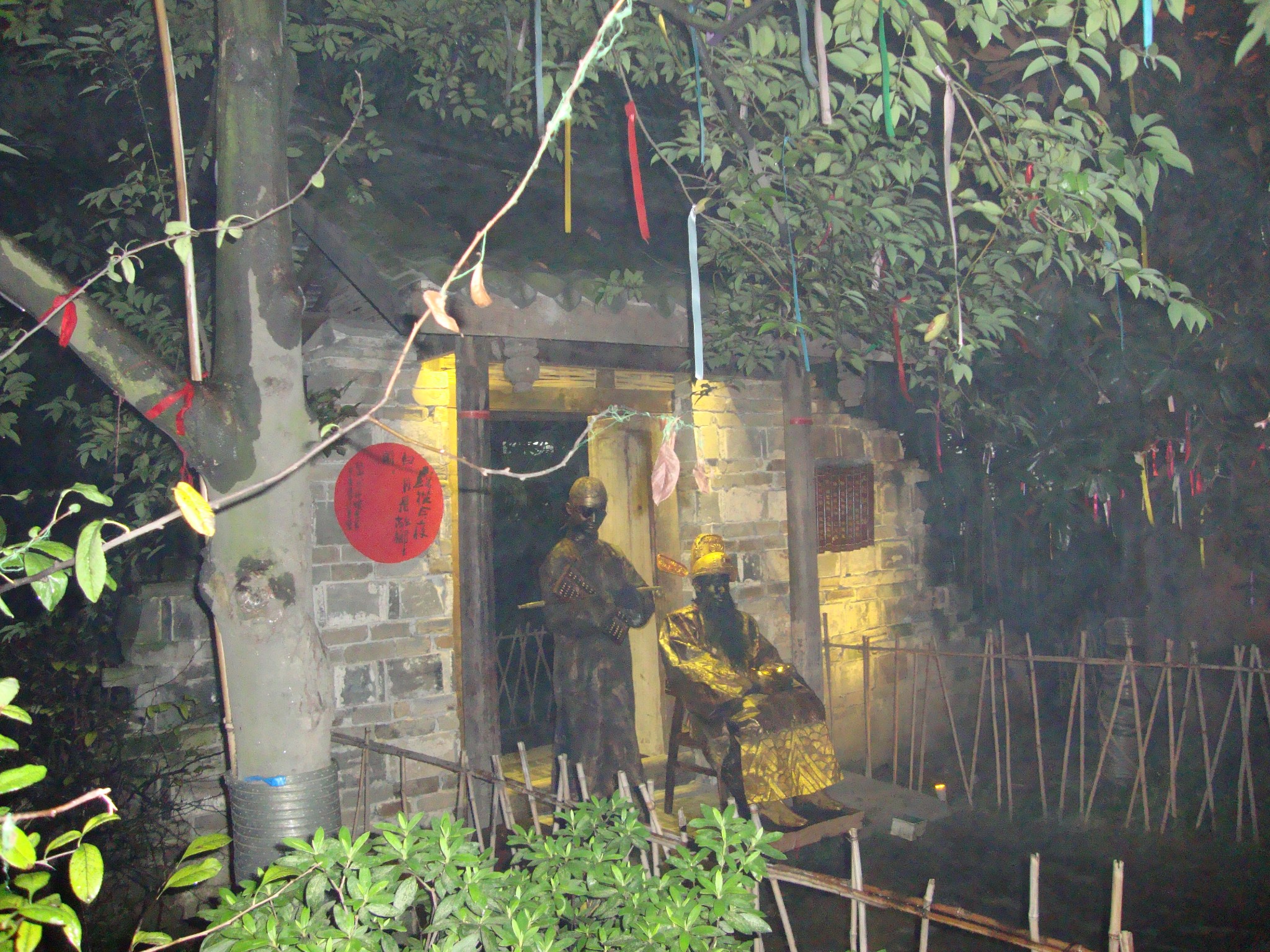 锦里的行为艺术蒙骗了我们,远远看到有人围观,走近瞧瞧,原来是一个清末人物和包公的“塑像”,浑身上下都是古铜色。清末人物戴着小帽和眼镜抱着算盘悠闲的拨拉着,而包公则一脸正气的坐在院门前,正在纳闷这两个不太像出现在一个时代的“塑像”怎么会引来那么多人围观,忽然,他们动了,很是吓了我一跳。原来他们都是真人,我倒吸了一口气,太佩服这位给他们化妆的大师了!~