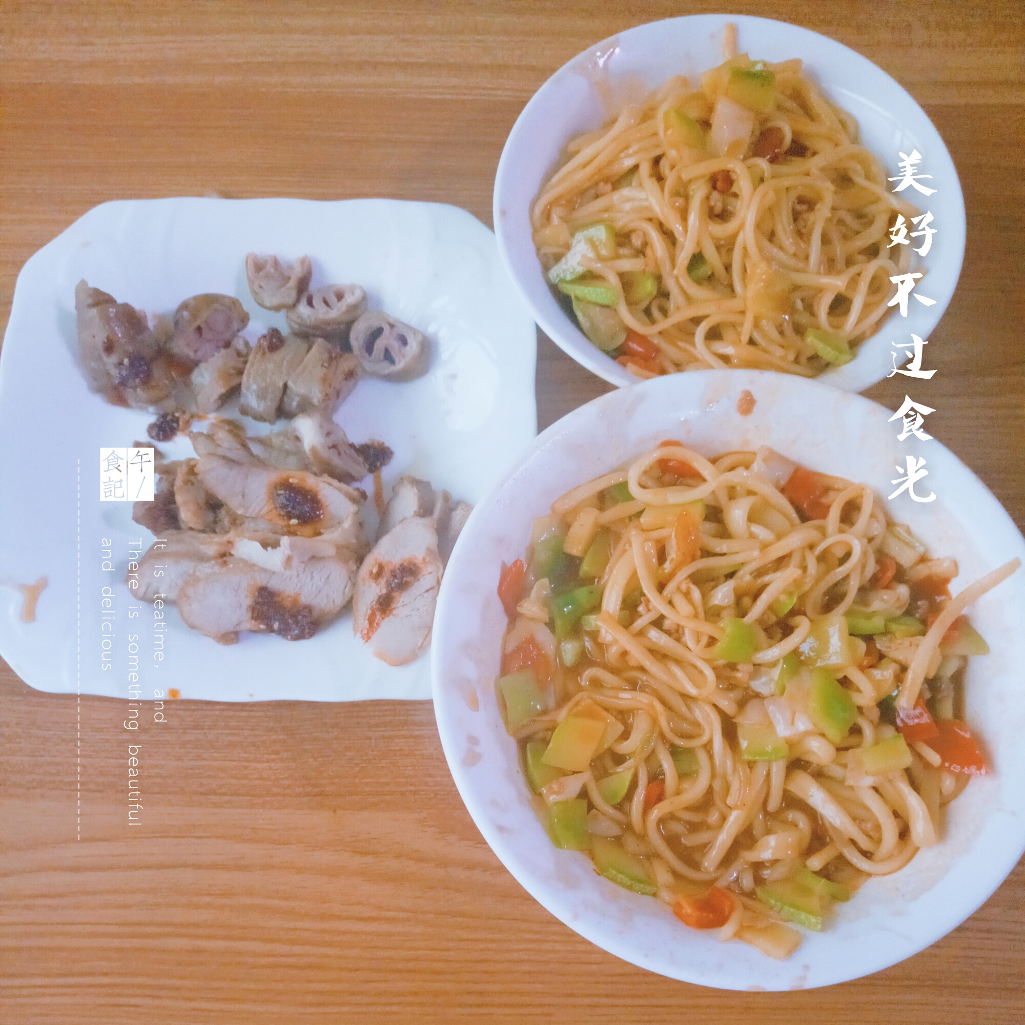 中饭晚饭同一家店,这次点了小份炮仗面,一碗是突出来的= =外加卤肉和肥肠,真心划算。