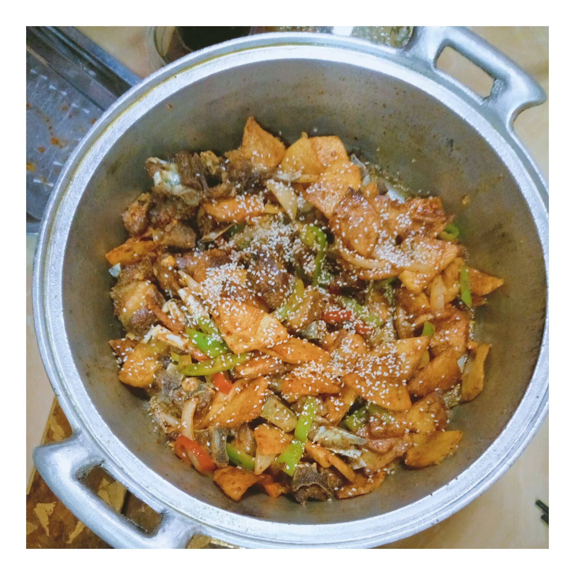 刚察县上10多人一起吃的烧烤,碳锅牛肉土豆,土豆就像薯片一样!