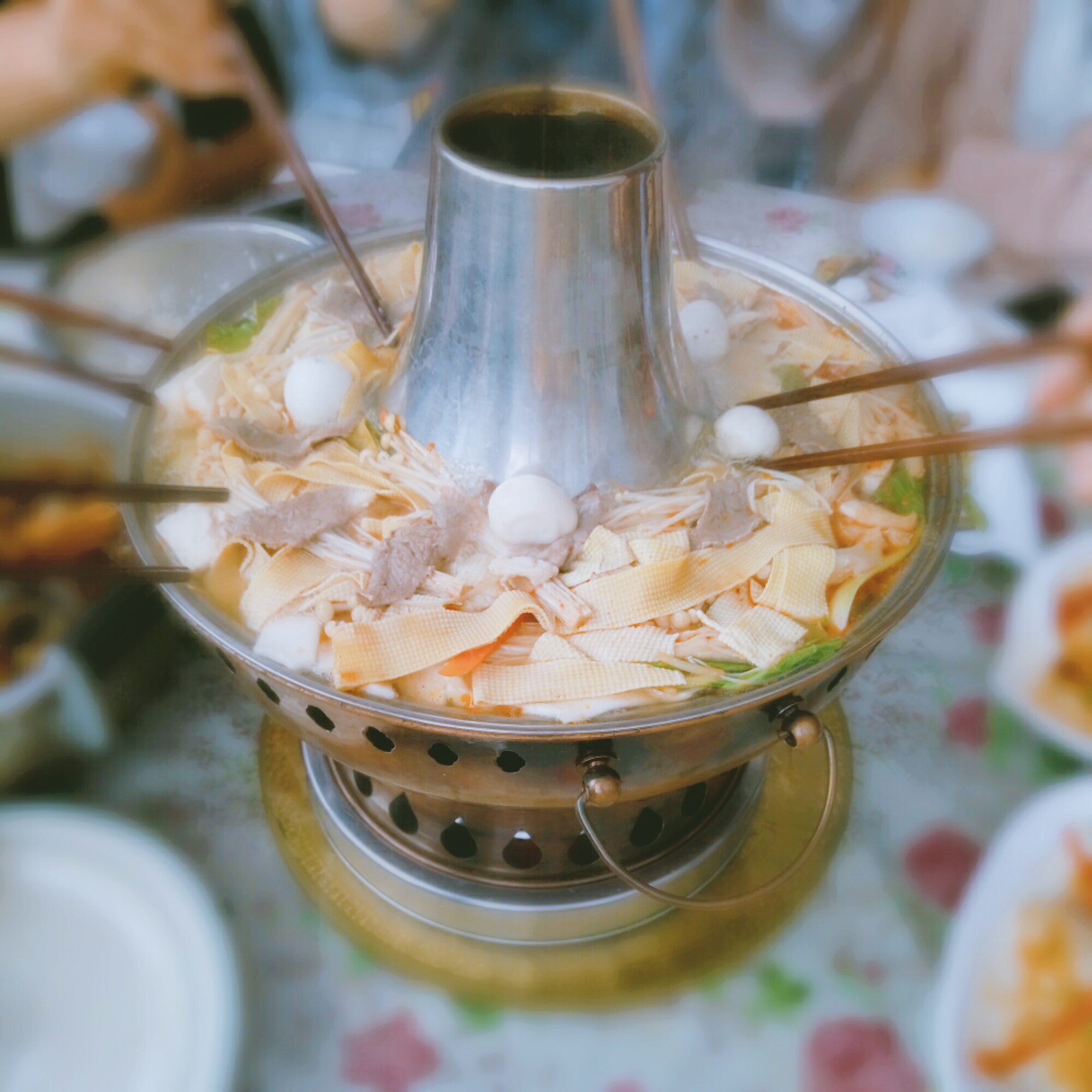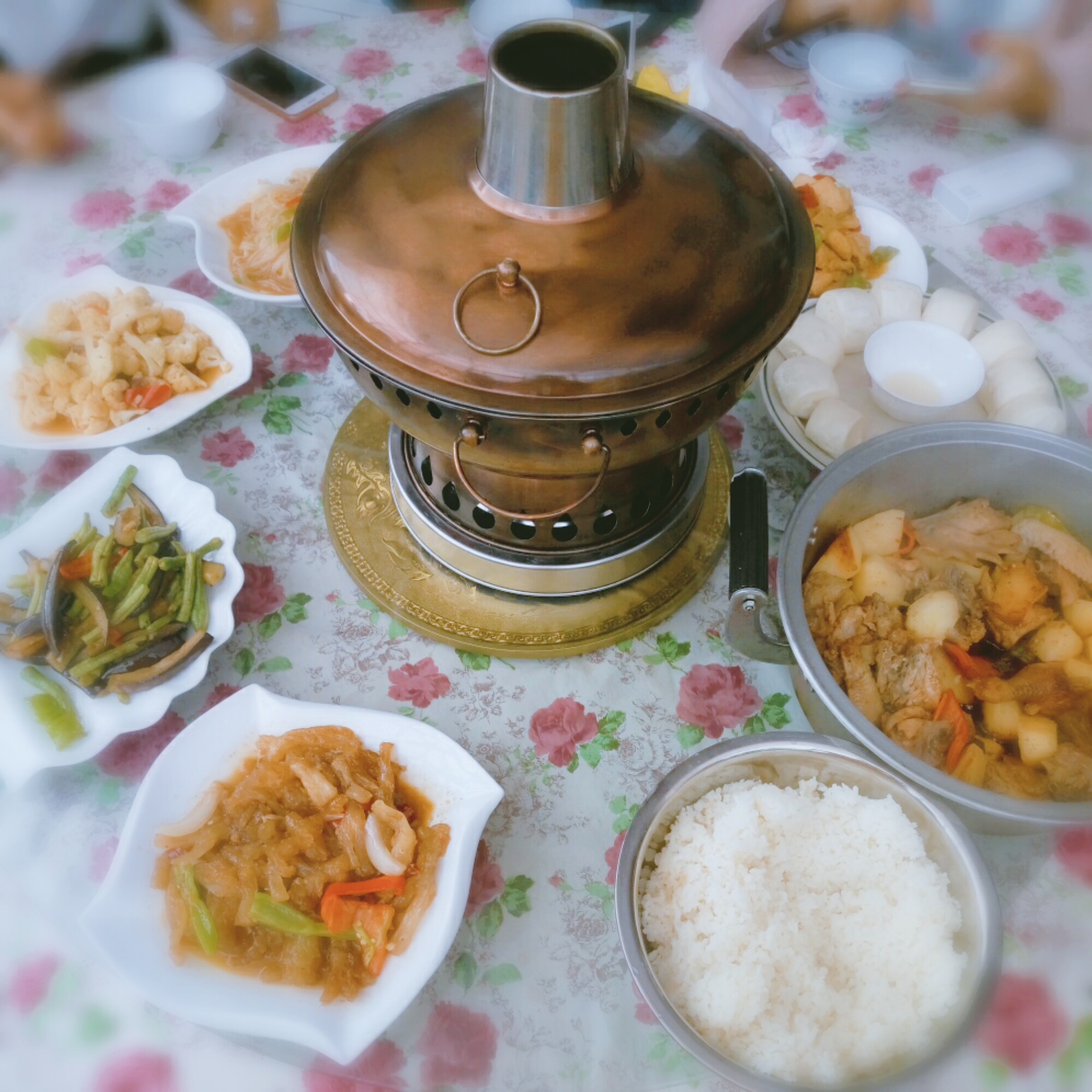 马大哥家的土火锅,一桌子人啊,要快点夹菜哈哈哈。