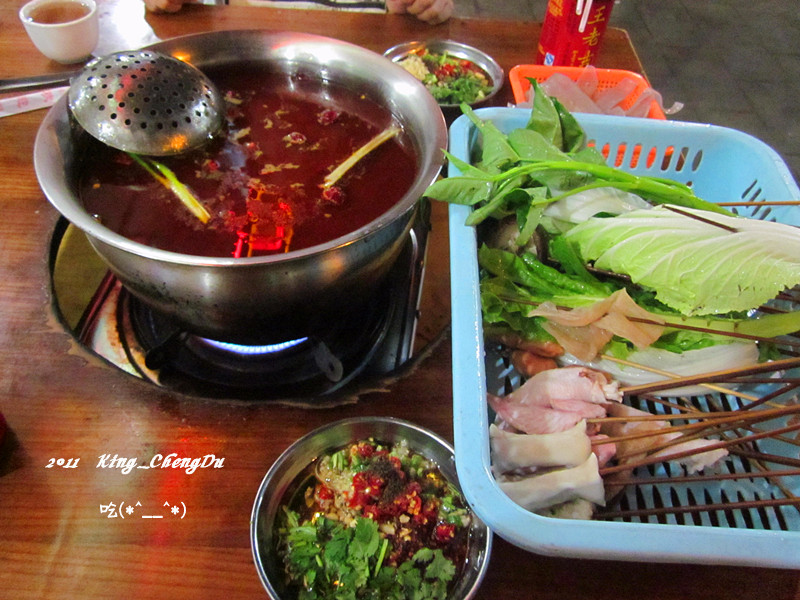 友人带着我们穿街走巷,来到一家吃冒菜の地方。10来平米の店铺,挤满了人。